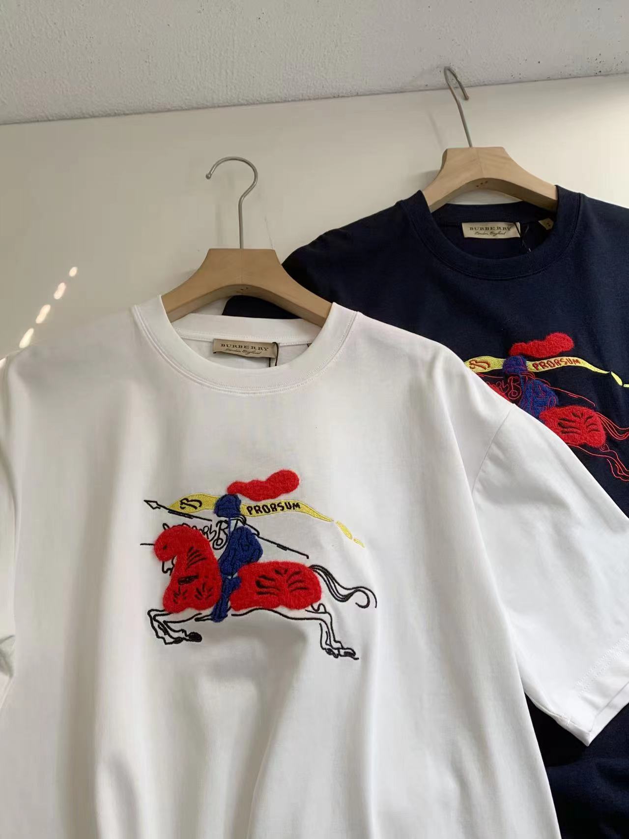 2026早春 新禧贺岁系列的战马骑士刺绣T恤,胸前的红色战马刺绣太有辨识度了,进口机器刺绣,光泽感强,图案立体jing致,金属感纱线+立体绒毛结合,轮廓清晰 细节饱满 工艺很绝~(刺绣超jing致 不同颜色和材质的层次感 是外行都能感受到的贵)红蓝撞色的设计,瞬间就把新年的喜庆氛围拉满了,但又不会显得俗气,反而有种gao级的复古感。男女同款 微落肩直筒设计,属于精典好穿的版型 可以闭眼入!240克水洗棉质