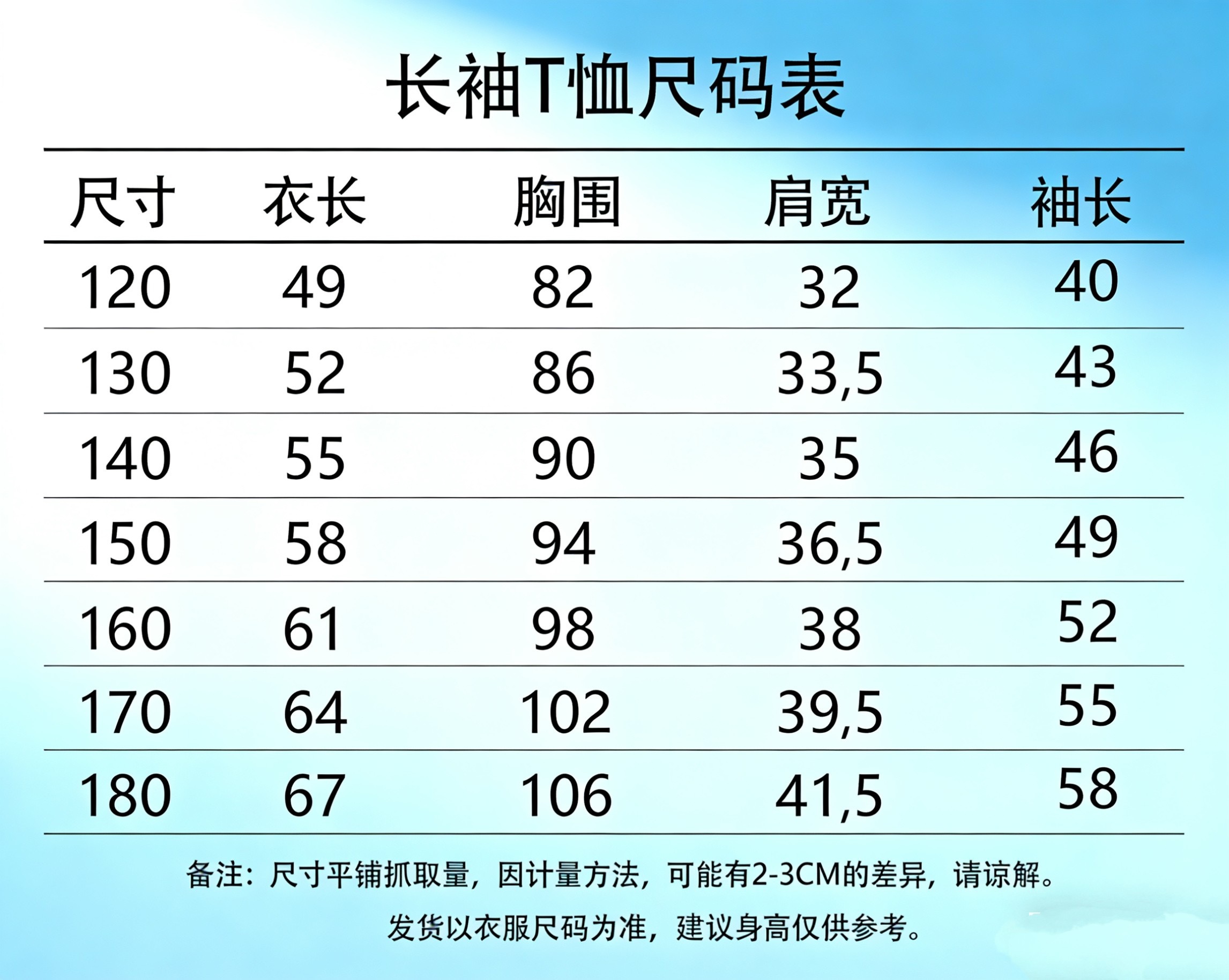 R:尺码120-180