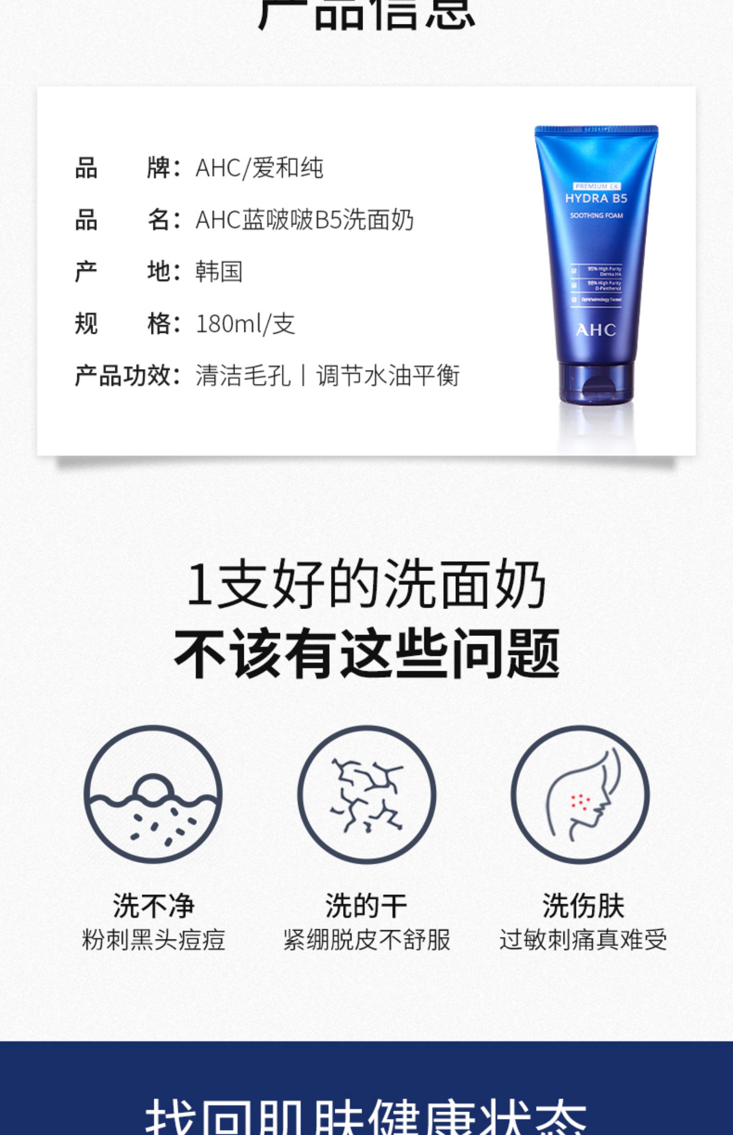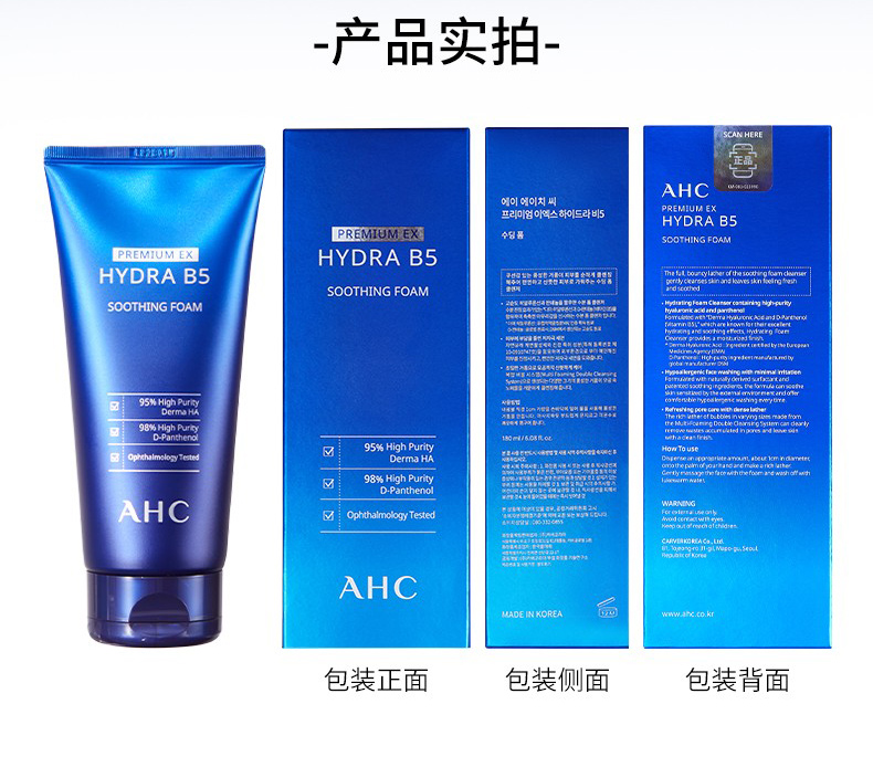 现货▲韩国 AHC洗面奶b5玻尿酸洗面奶 温和不刺激 孕妇可用 180ml