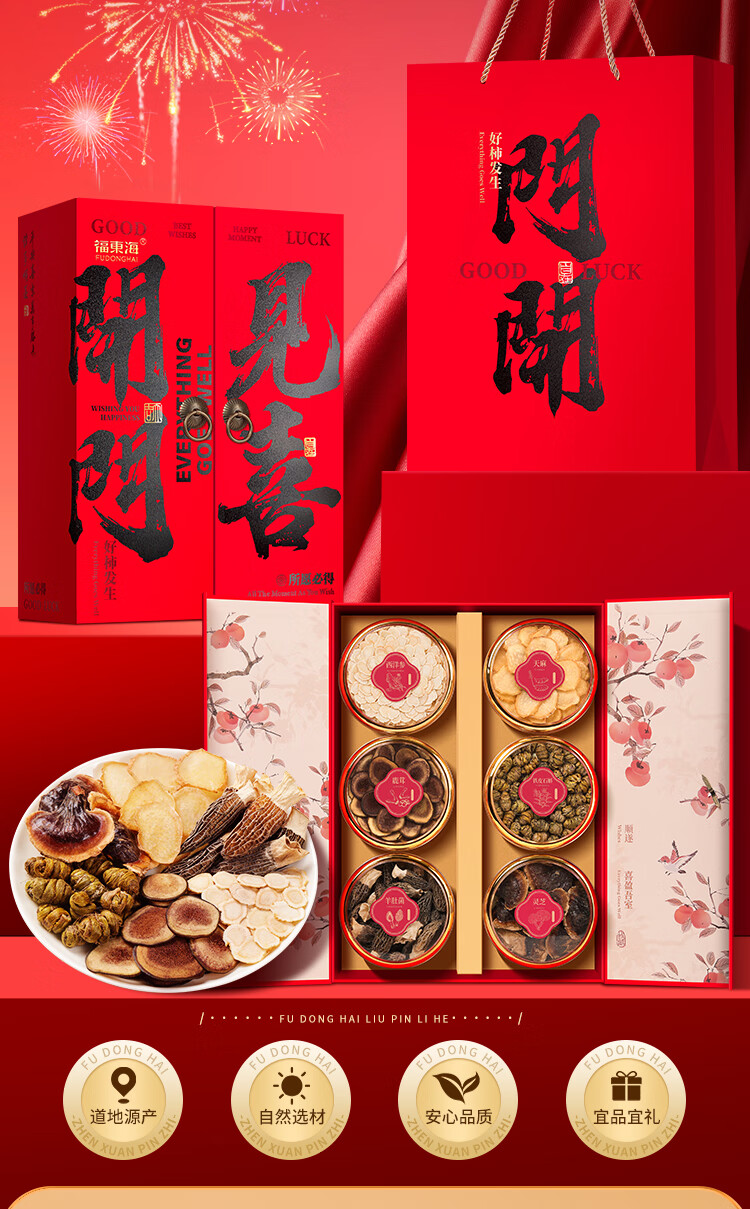 福东海 西洋参片石斛羊肚菌天麻鹿茸片六拼开门见喜礼盒230克