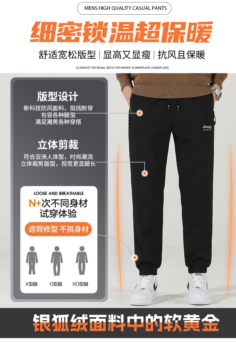 【专属】JEEP SPIRIT【加厚银狐绒休闲裤】加绒加厚舒适一体绒+外层防水,保暖一件搞定!
