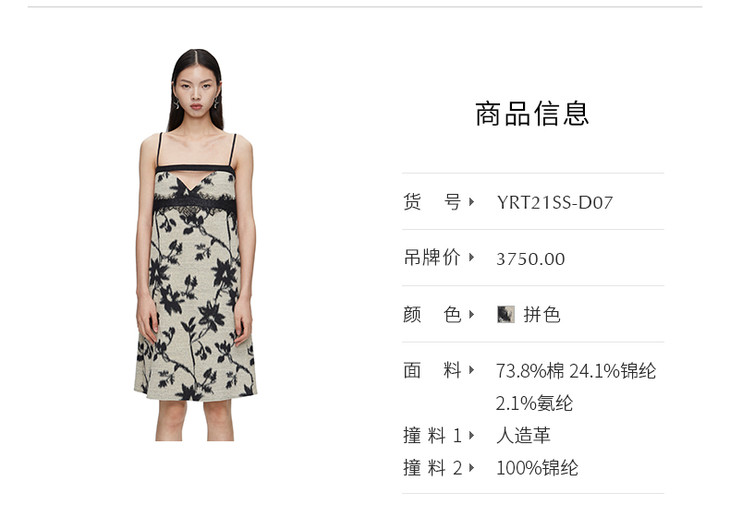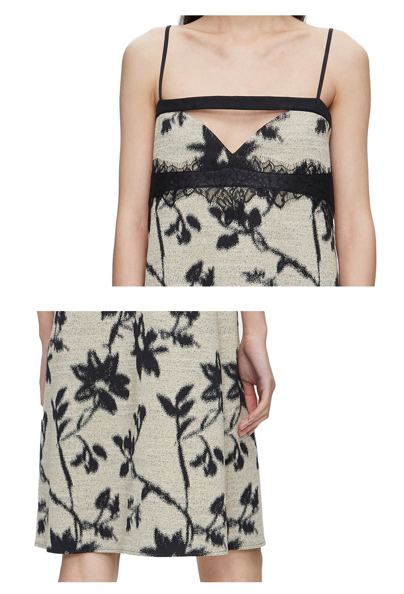 YIRANTIAN 米黑提花蕾丝拼接镂空式连衣裙 YRT21SS-D07SNP