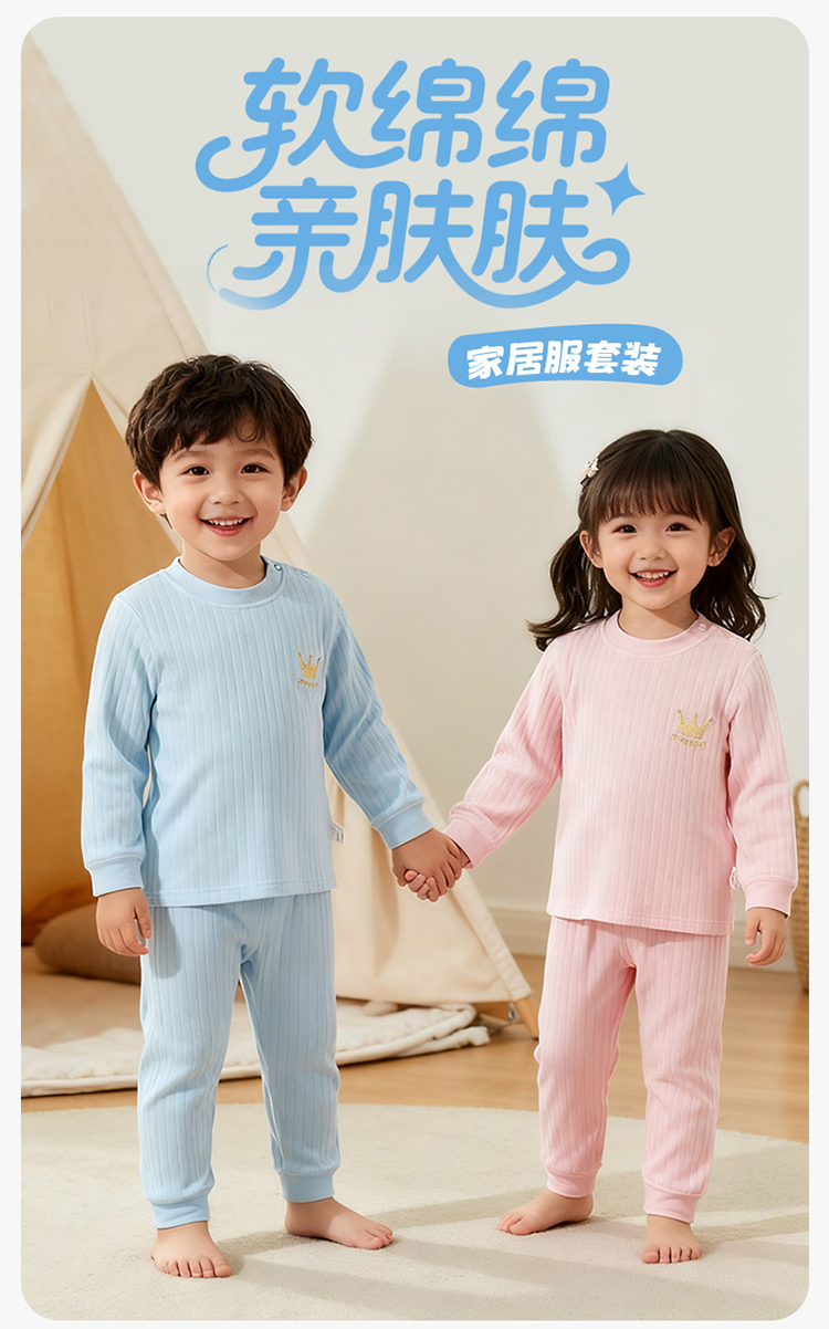 贝贝怡2025春秋新款男女宝宝套头家居服套装纯棉秋衣秋裤打底两件套ZB3ET062