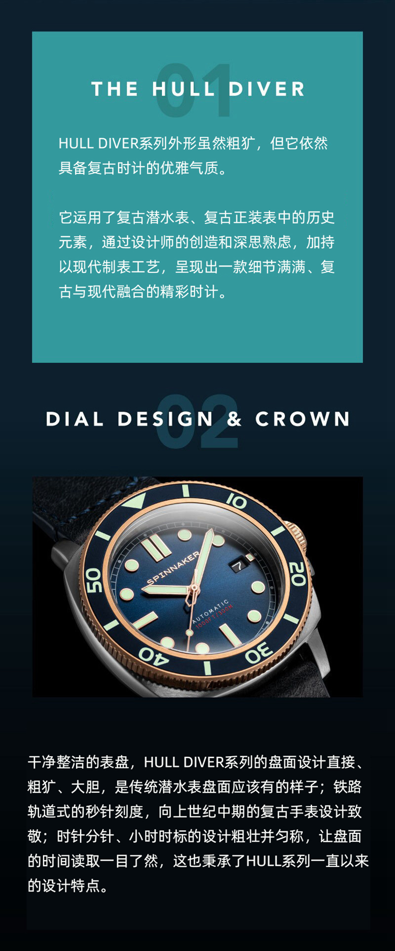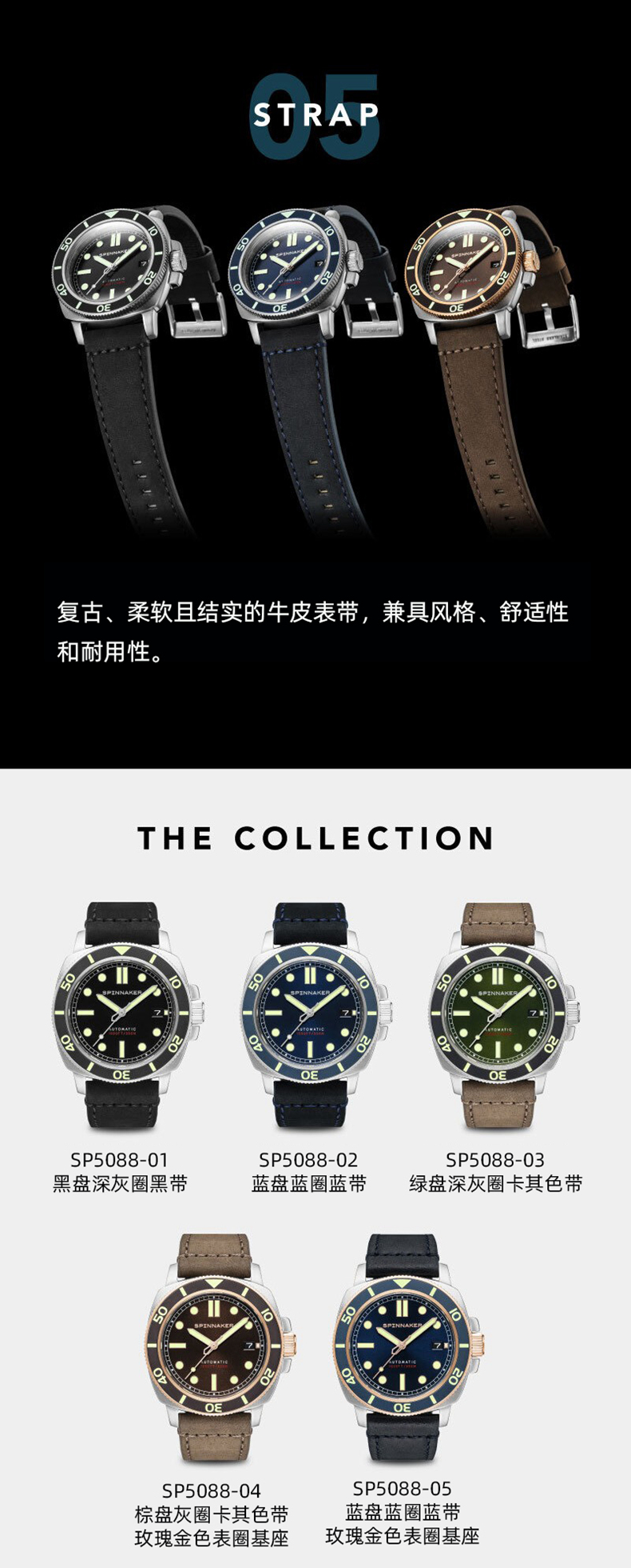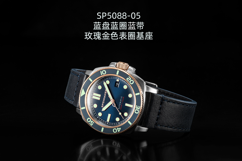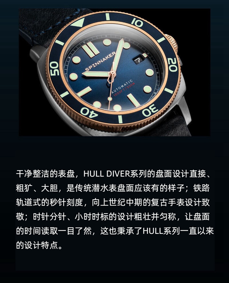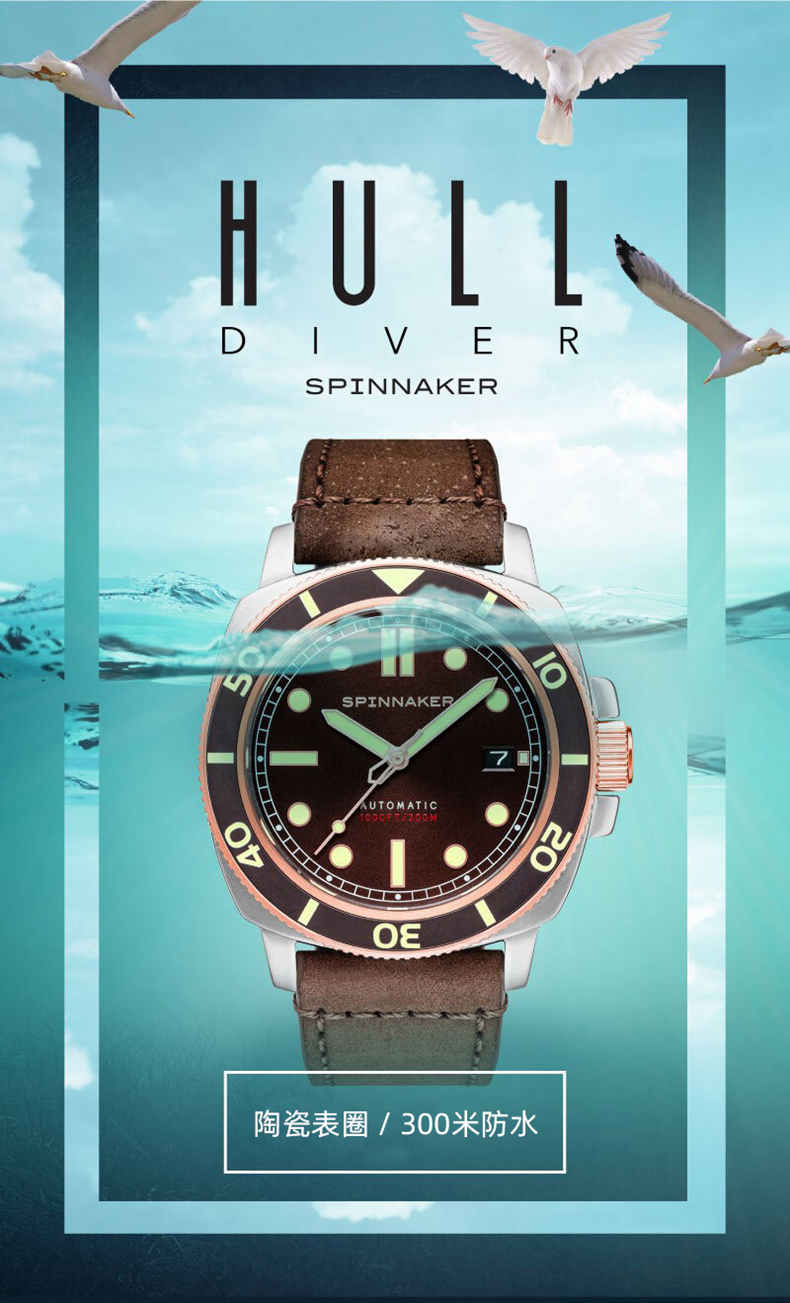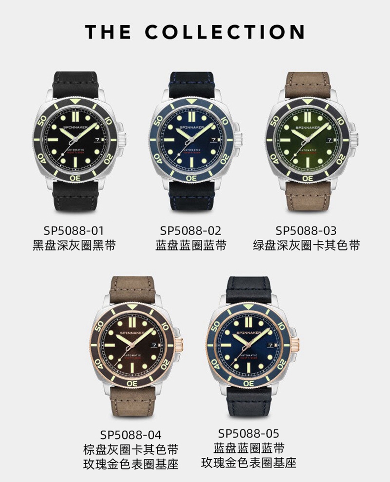 英国SPINNAKER三角帆HULL复古自动机械手表潜水陶瓷圈夜光SP5088