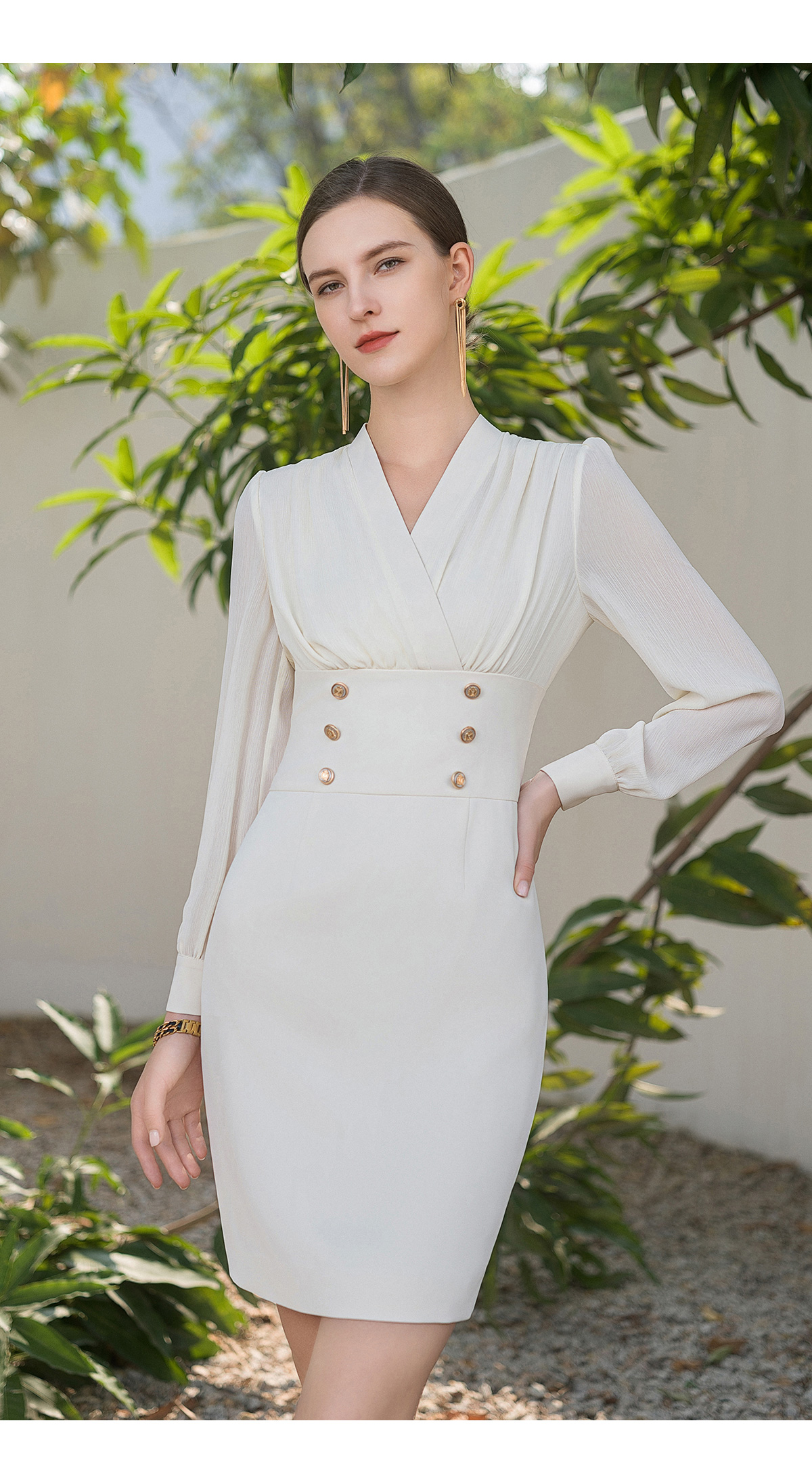 AD米白色西装连衣裙气质女神范2024夏季新款雪纺接拼续长袖掐腰裙