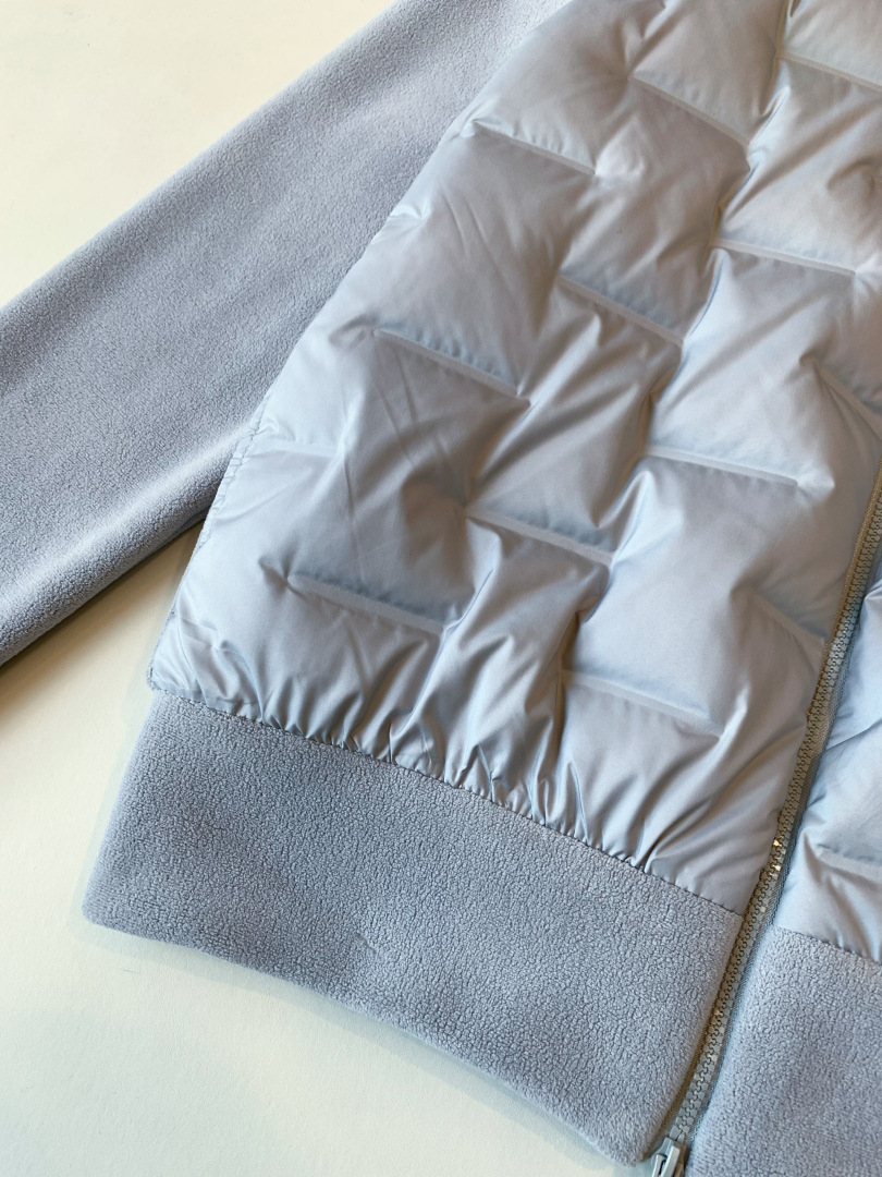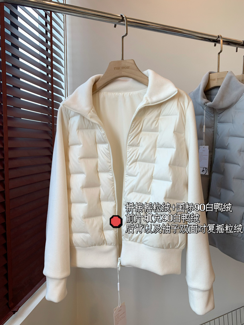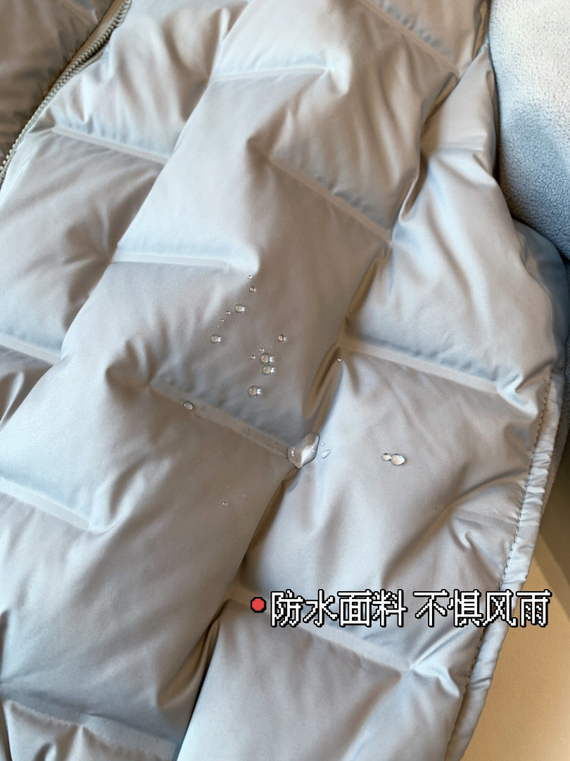 前片填充90白鸭绒,后背以及袖子双面对复摇粒绒