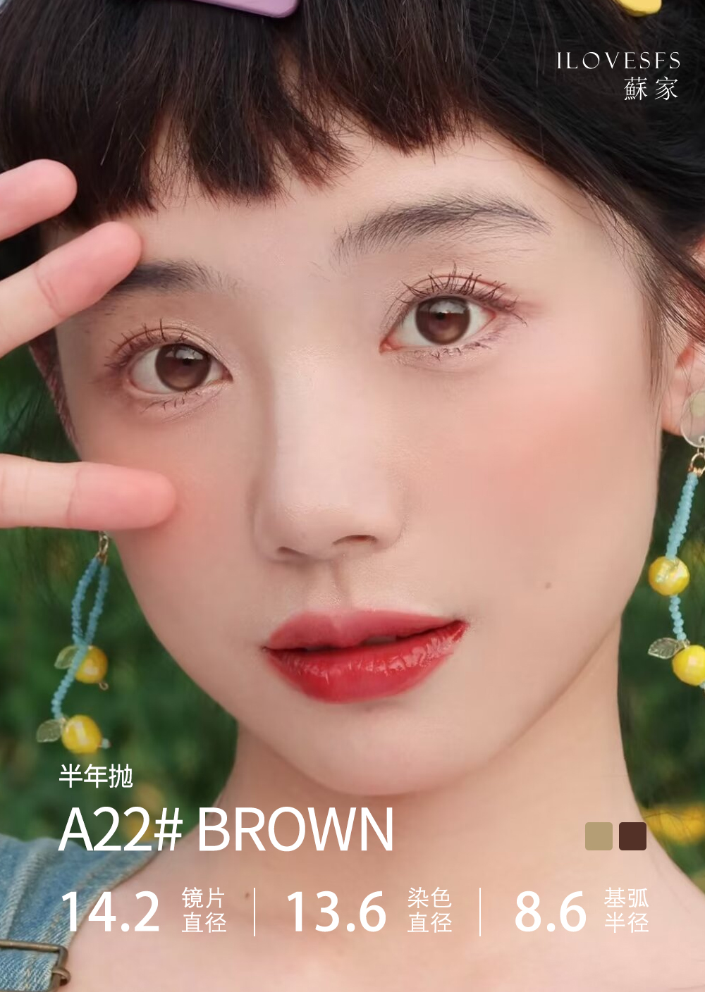 A22#Brown小卧蚕高光 巧棕/黑绿/黑红 【1片装】进口-舒适推荐 / 14.2mm半年抛