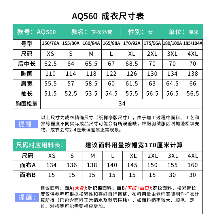 裁缝学苑AQ560美式复古开衫卫衣纸样外套女装宽松立领拉链上衣服装打板