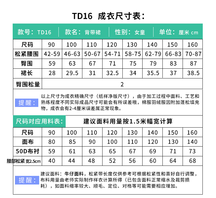 裁缝学苑 AD04-TD16亲子背带裙1:1实物服装纸样剪裁图纸牛皮纸样