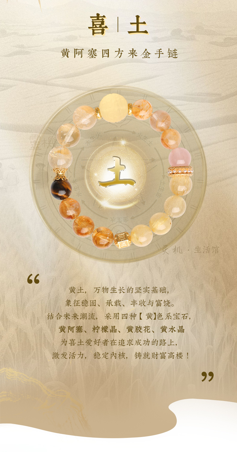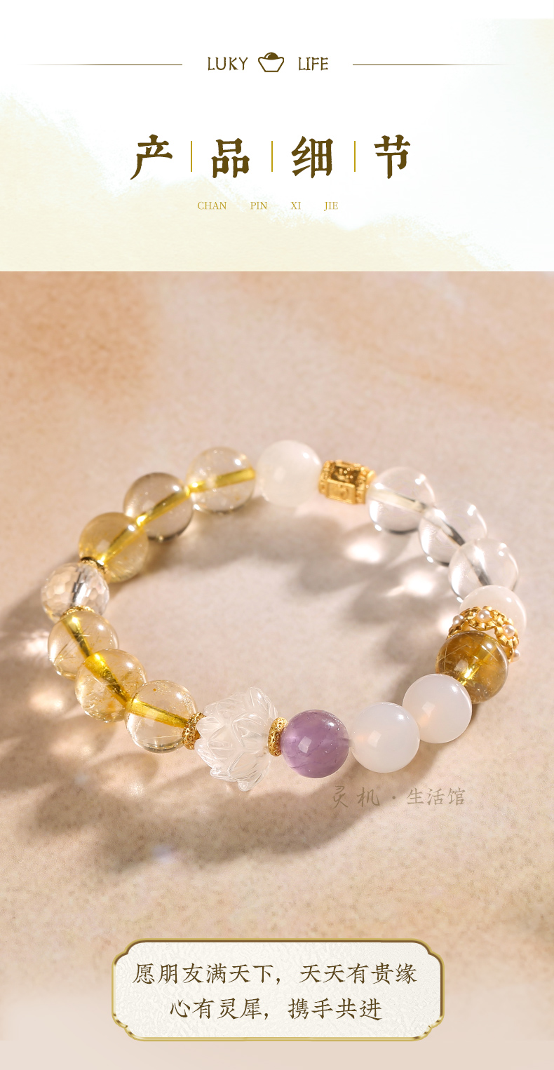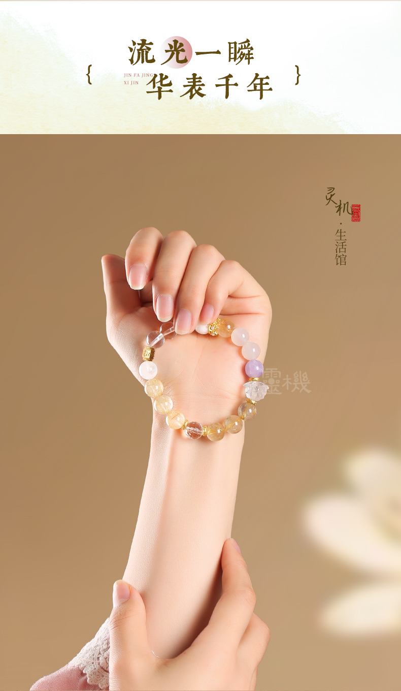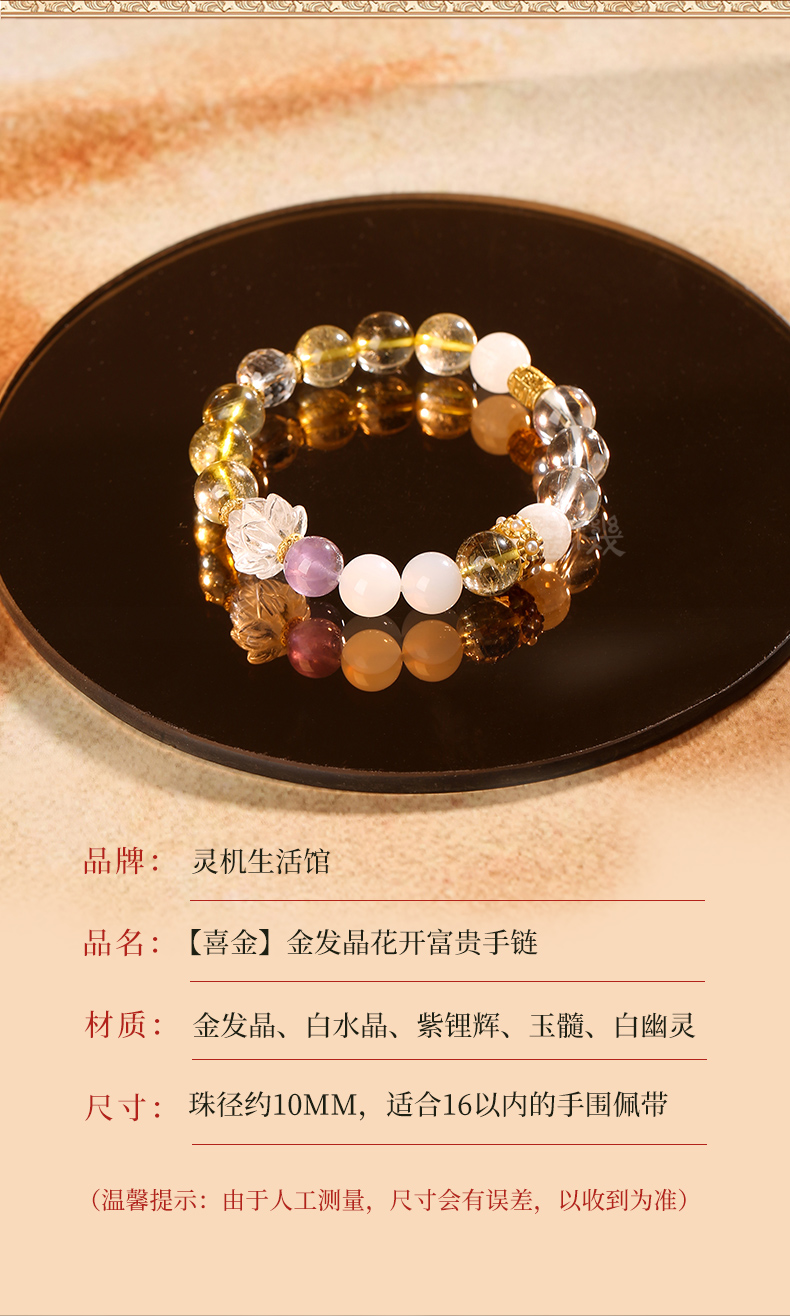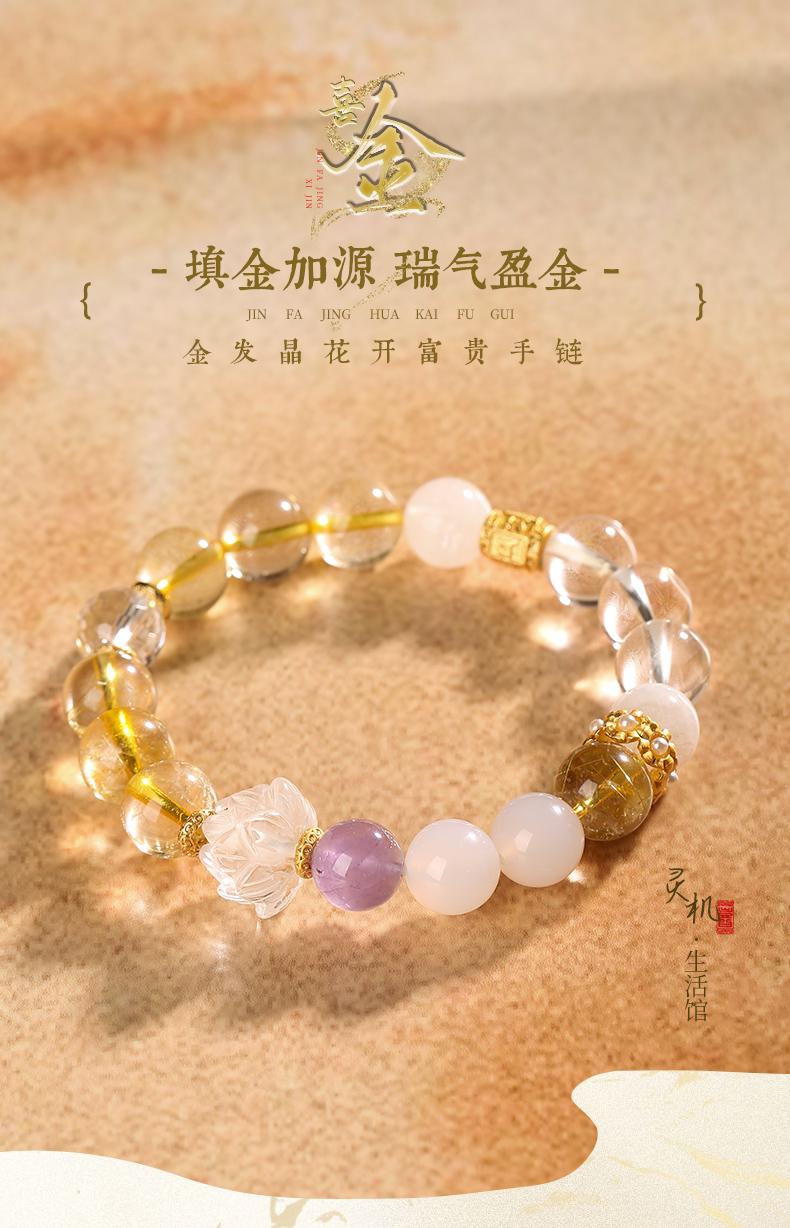 【祈愿吉品】「喜金」金发晶花开富贵手链