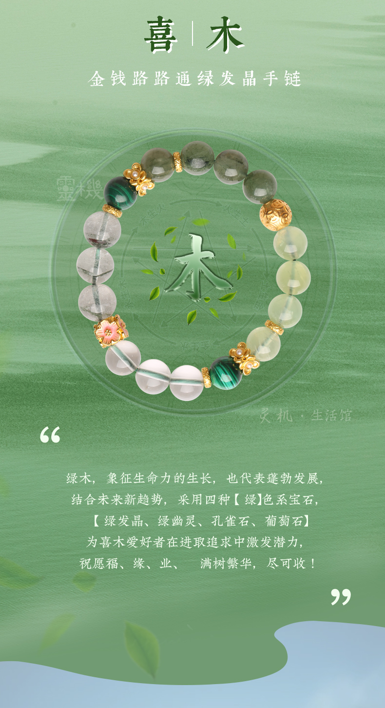 【祈愿吉品】「喜木」绿发晶金钱路路通手链