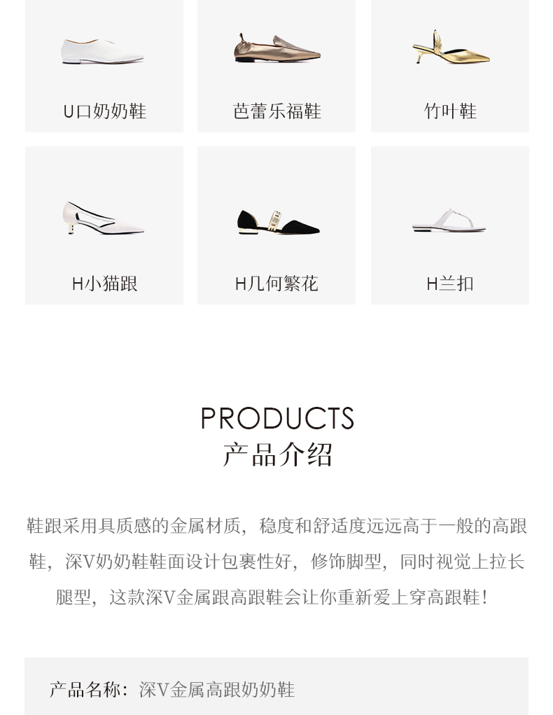 heelz设计师手工鞋履 |深V高跟奶奶鞋金属跟75mm