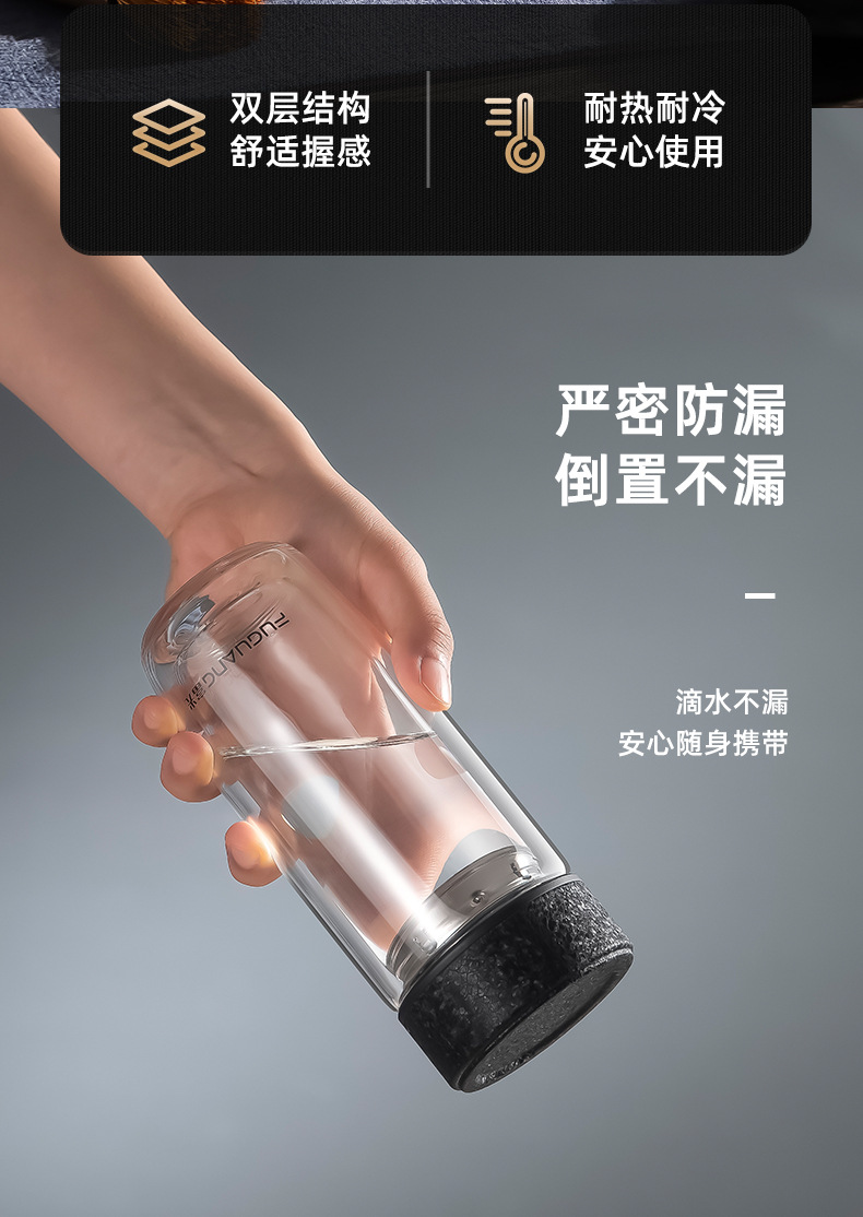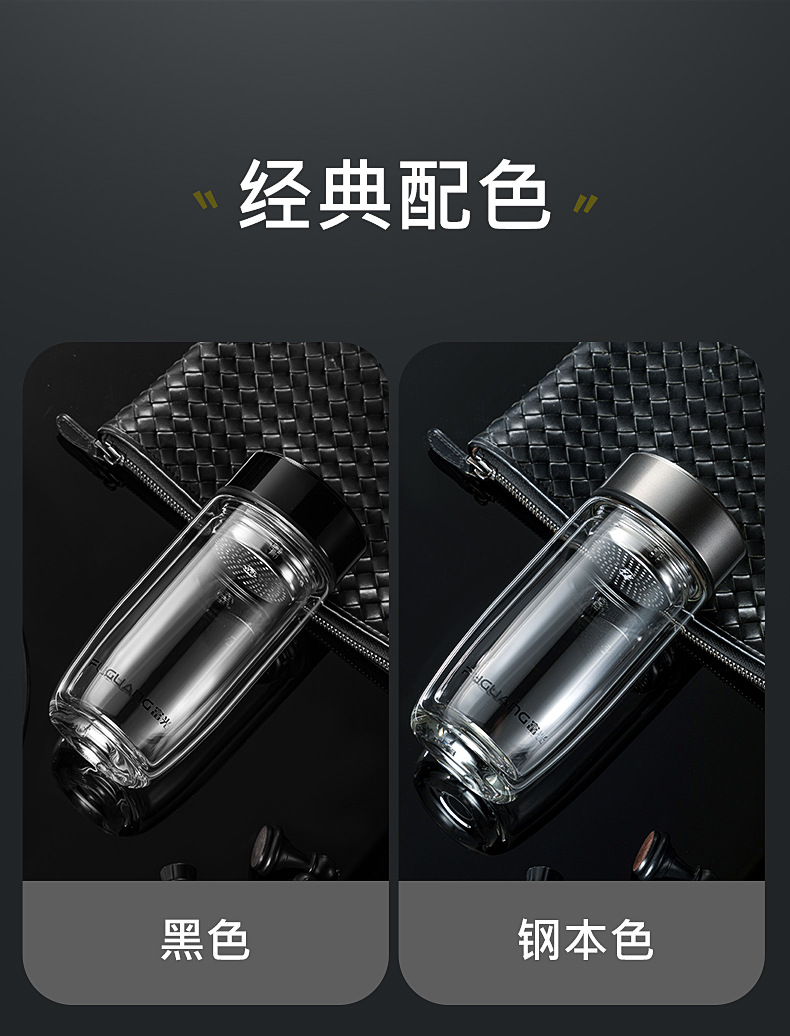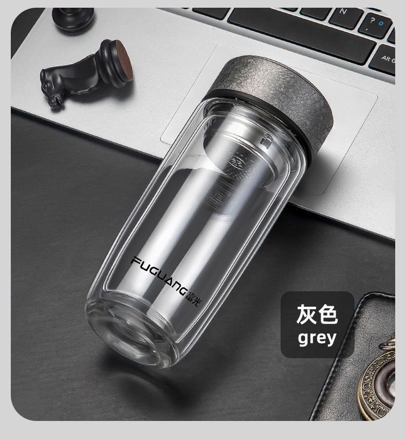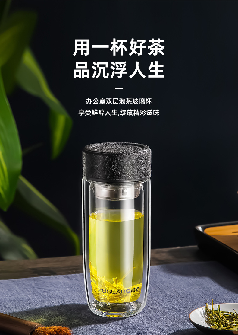 富光双层鹅蛋杯车载办公玻璃杯简约大容量水杯
