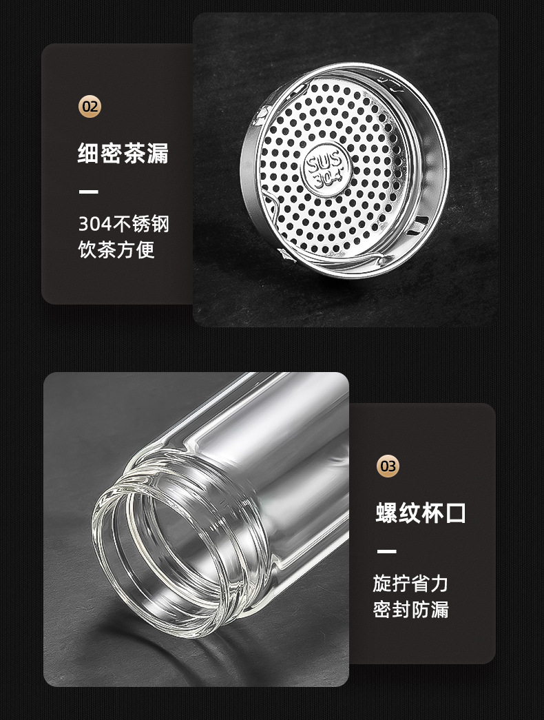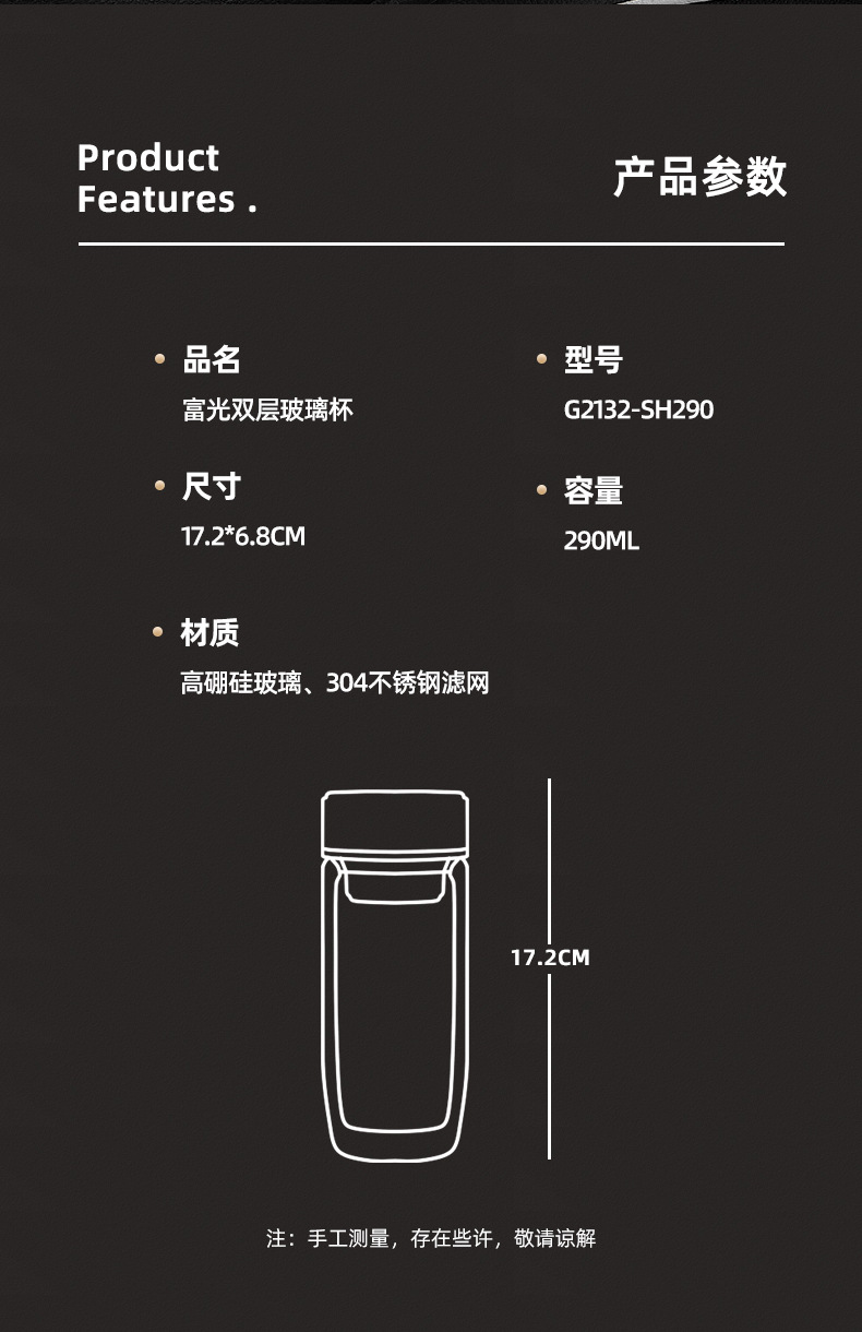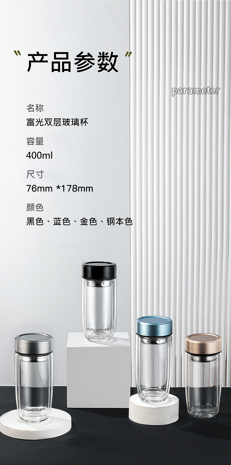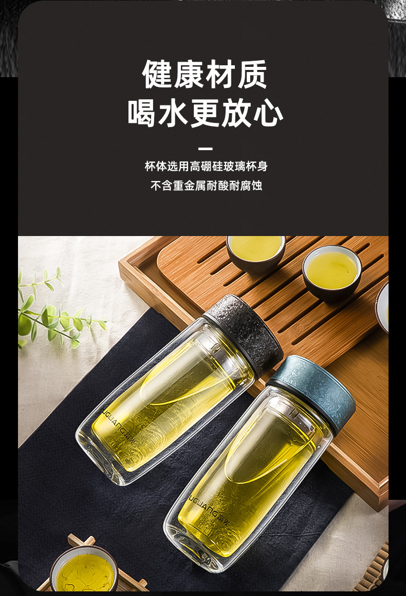 富光双层鹅蛋杯车载办公玻璃杯简约大容量水杯