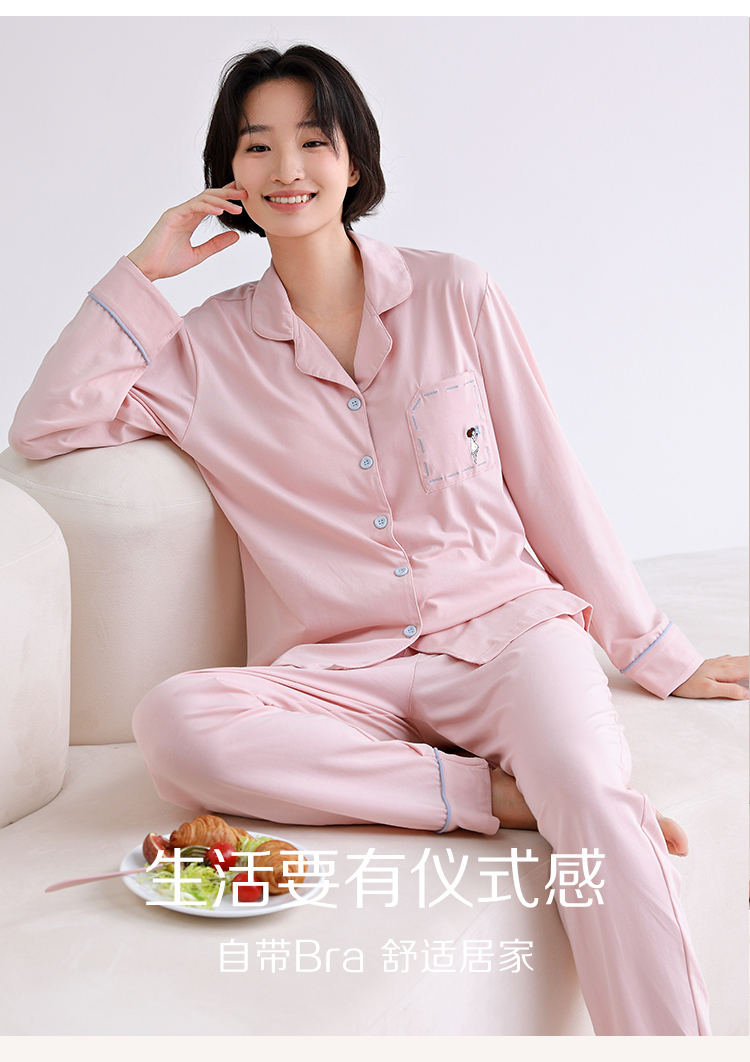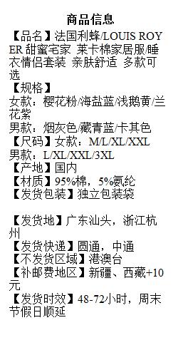 法国利蜂/LOUIS ROYER 甜蜜宅家 莱卡棉家居服/睡衣 情侣套装 亲肤舒适 女款带胸垫 多款可选