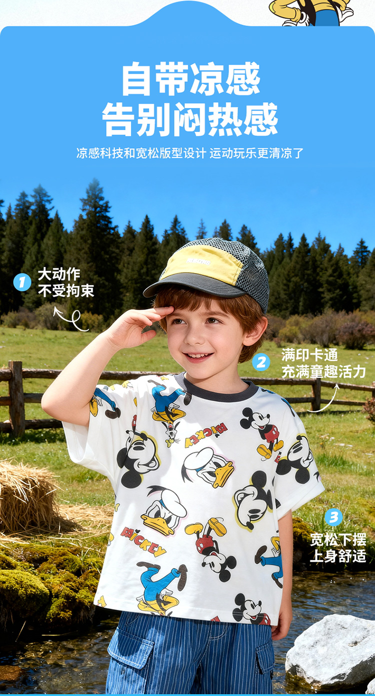 迪士尼夏季男童冰感短袖T恤ZD2FS026