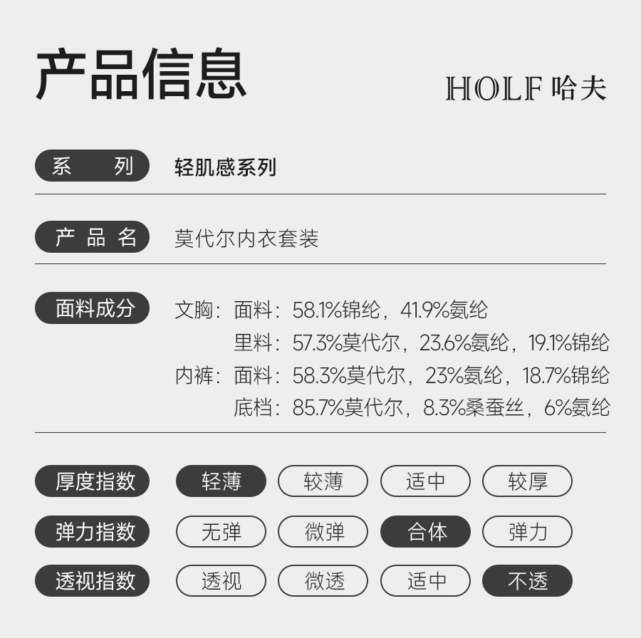 又给大家挑选了舒服的哈夫内衣内裤,上新啦!上身真的是让我惊艳到不行,果然能打败HOLF经典款的只有HOLF自己。这款春季王炸新品——0碳莫代尔内衣套装,看来又要占领我的衣柜啦!