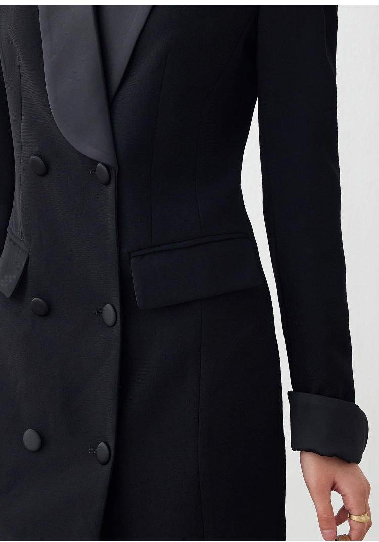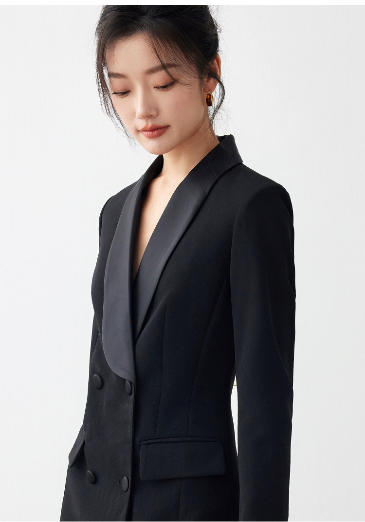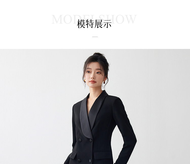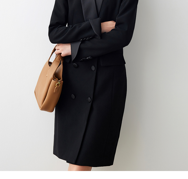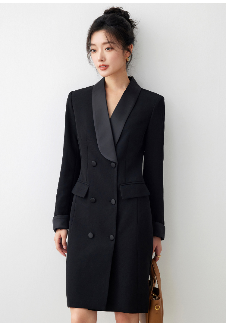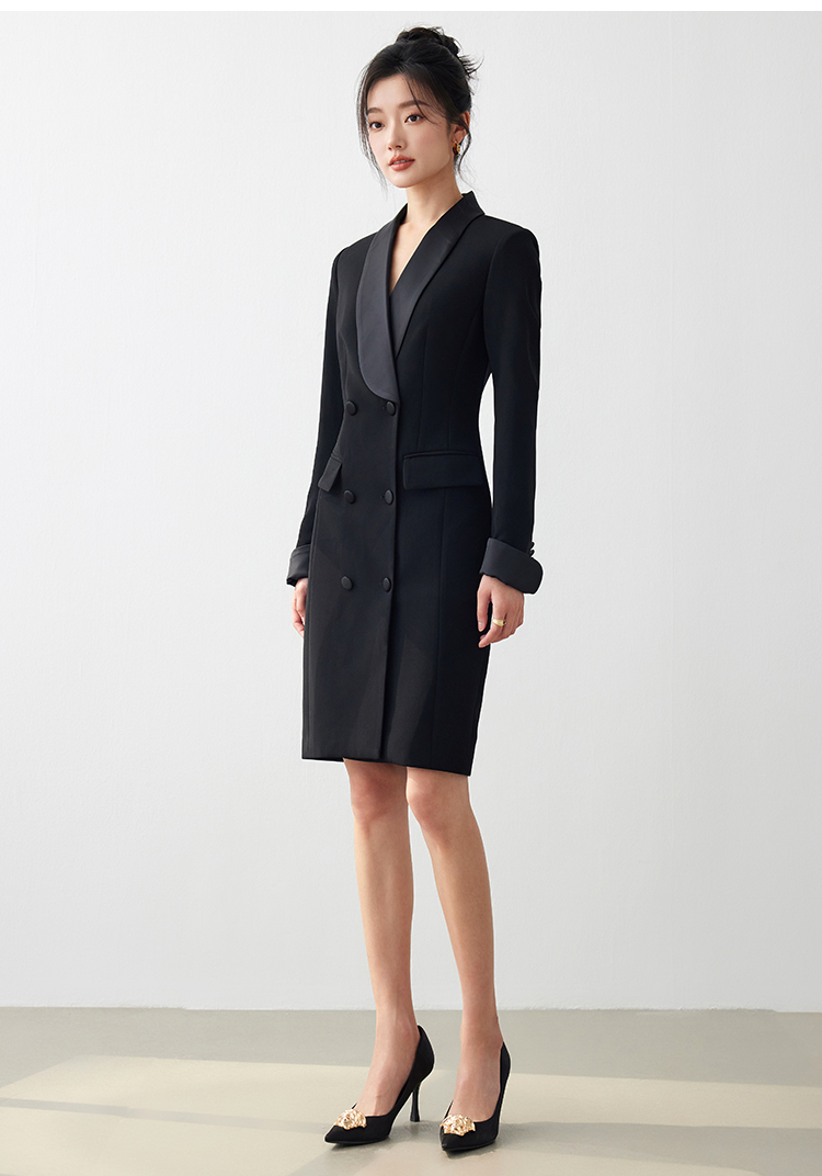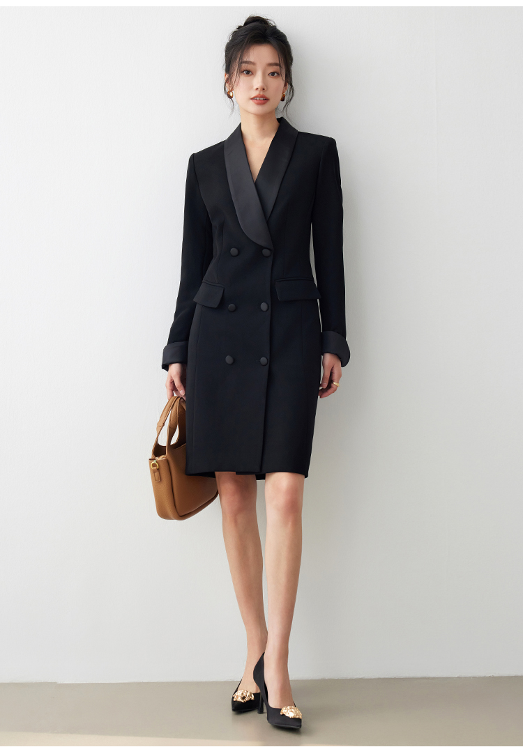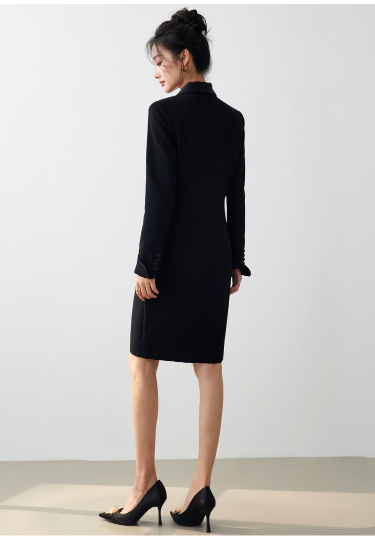 艾尚臣黑色连衣裙女秋冬新款时尚气质OL通勤青果领修身显瘦西装裙