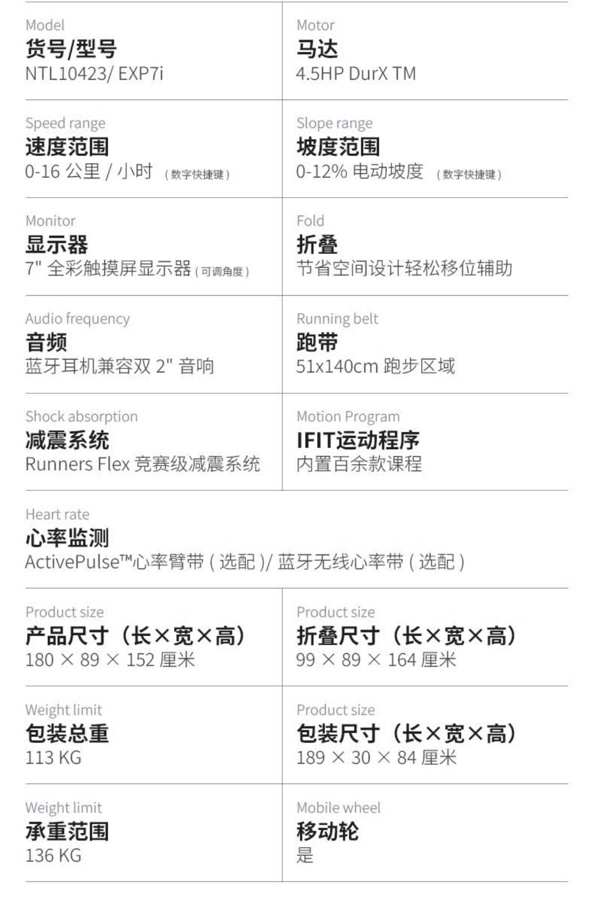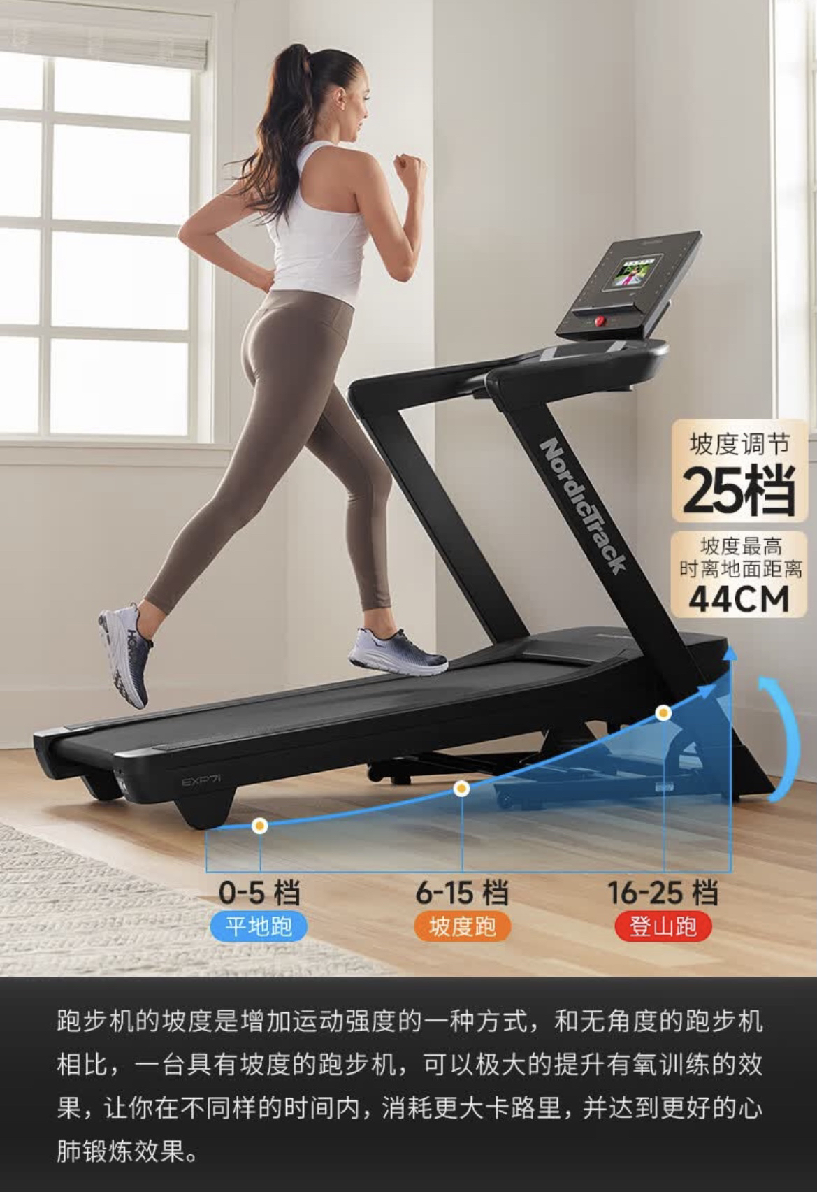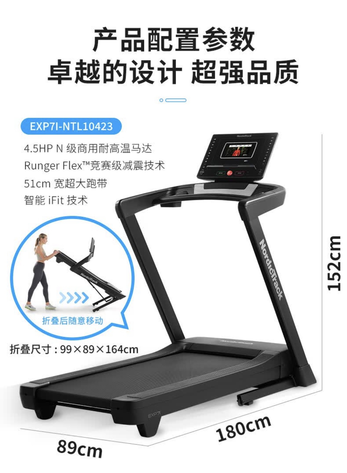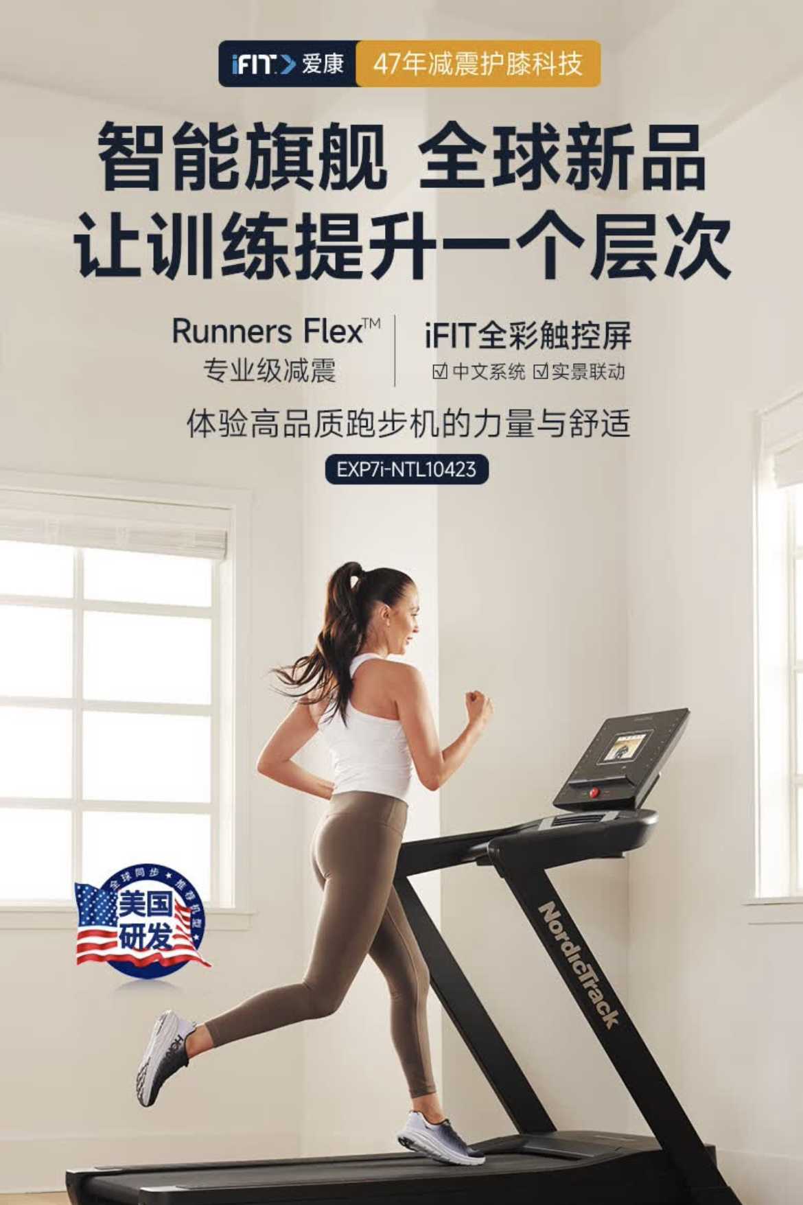 爱康(ICON)跑步机10423/EXP7i家用智能彩屏 NordicTrack电动减震健身器材