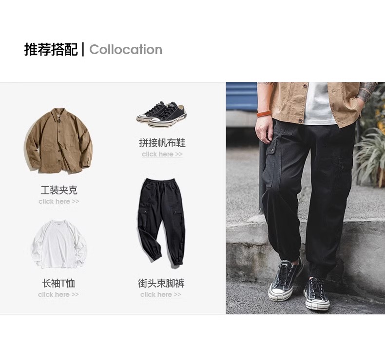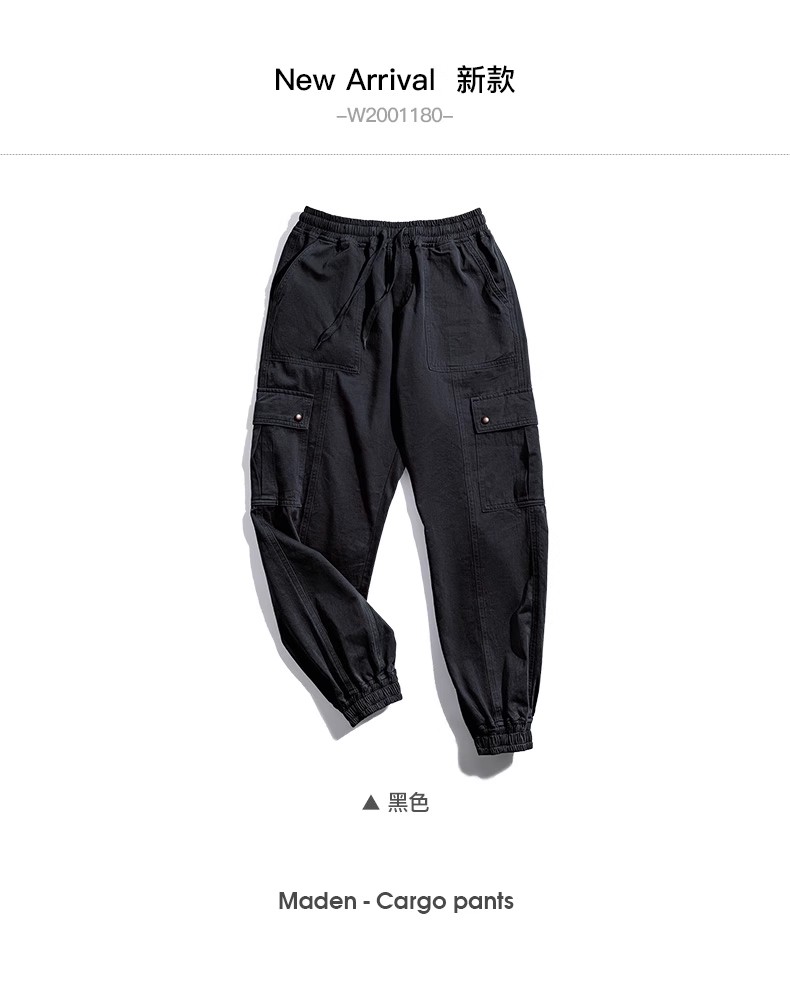 工装优选 美式复古山系多口袋纯色束脚裤阿美咔叽抽绳休闲长裤男