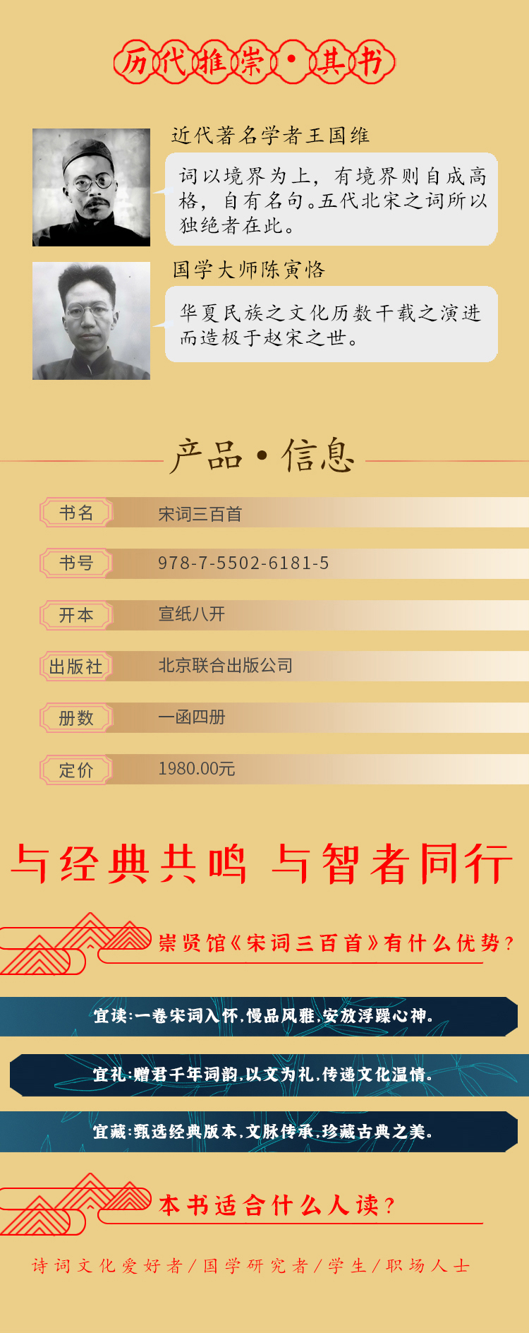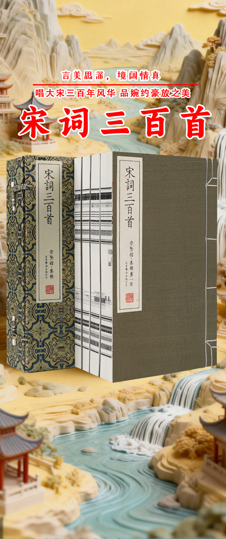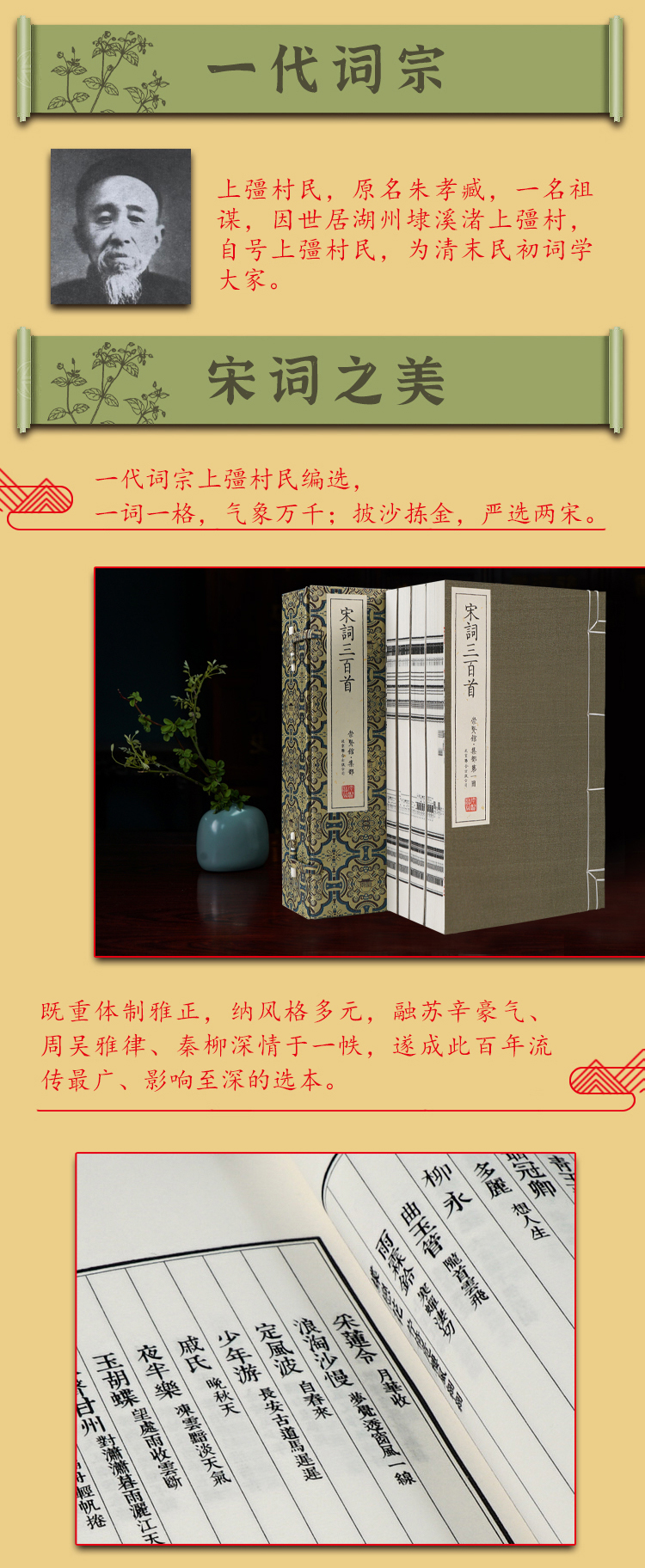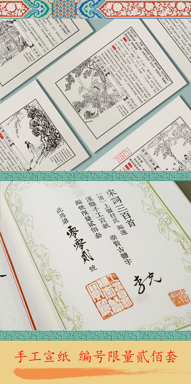 【崇贤宝笈】宋词三百首(一函四册) 编号版限量发行 手工宣纸繁体竖排 注释、词解、说明、词评、 词人逸事,精选底本