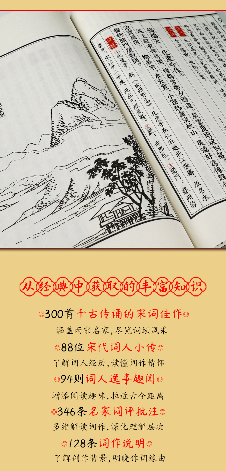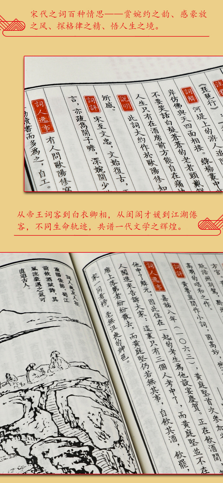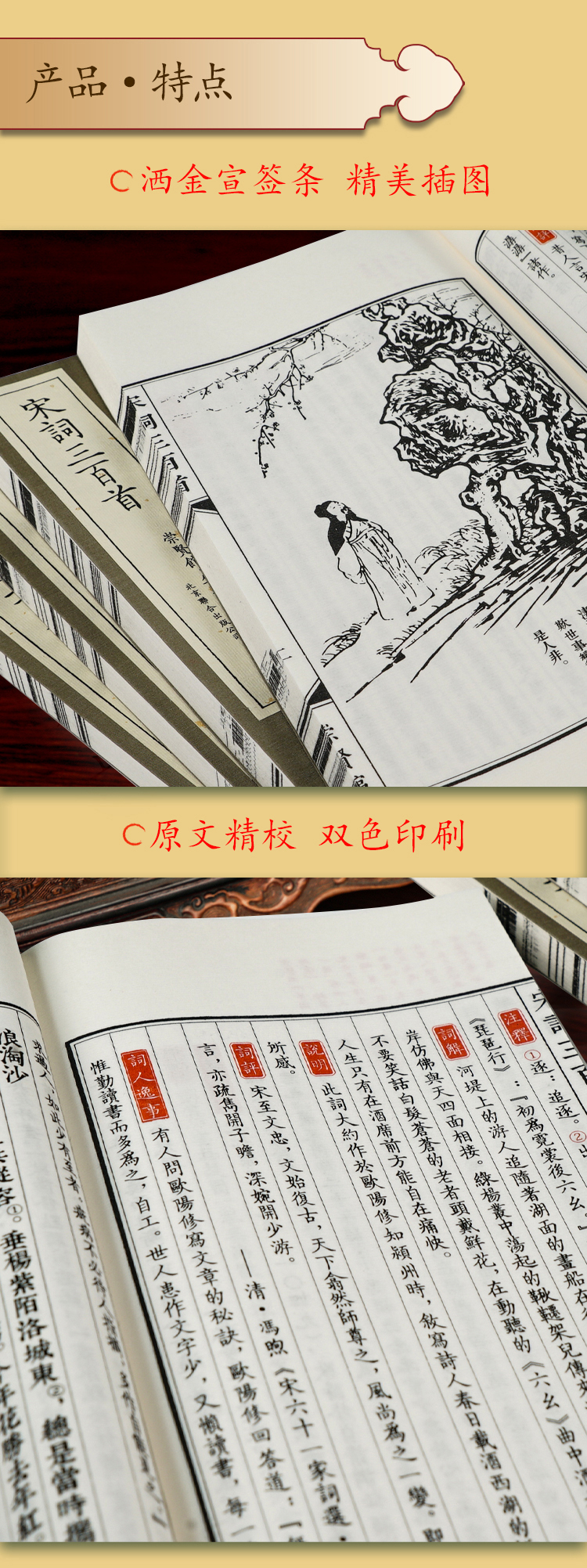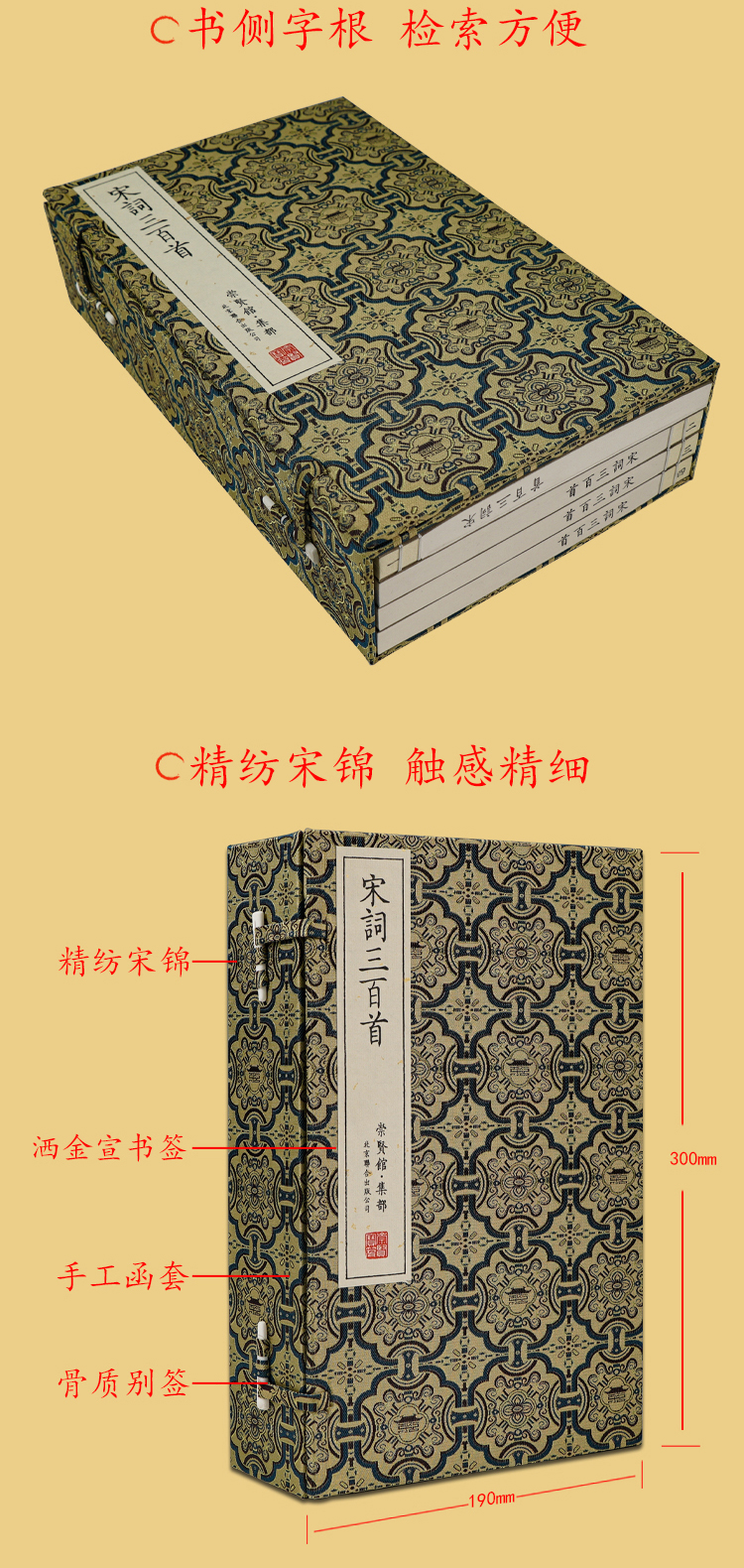 【崇贤宝笈】宋词三百首(一函四册) 编号版限量发行 手工宣纸繁体竖排 注释、词解、说明、词评、 词人逸事,精选底本