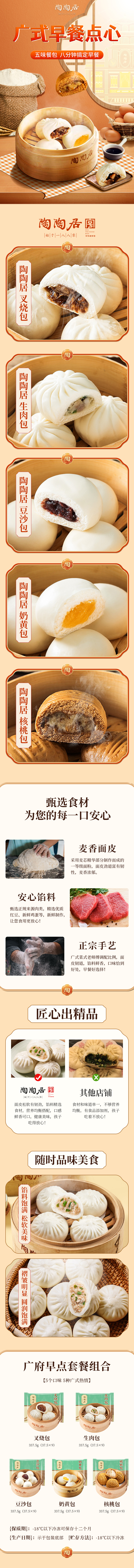 【冷链包邮】广府经典包点组合 5款口味。(叉烧包337.5g,核桃包337.5g,奶黄包337.5g,生肉包337.5g,豆沙包337.5g)