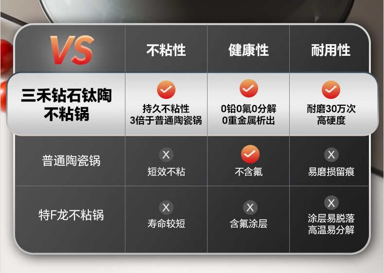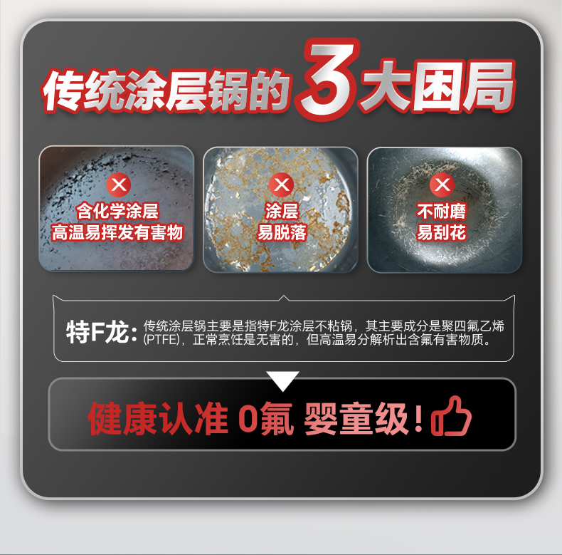 售后服务中心检测,享受以下服务:0涂层不粘锅类产