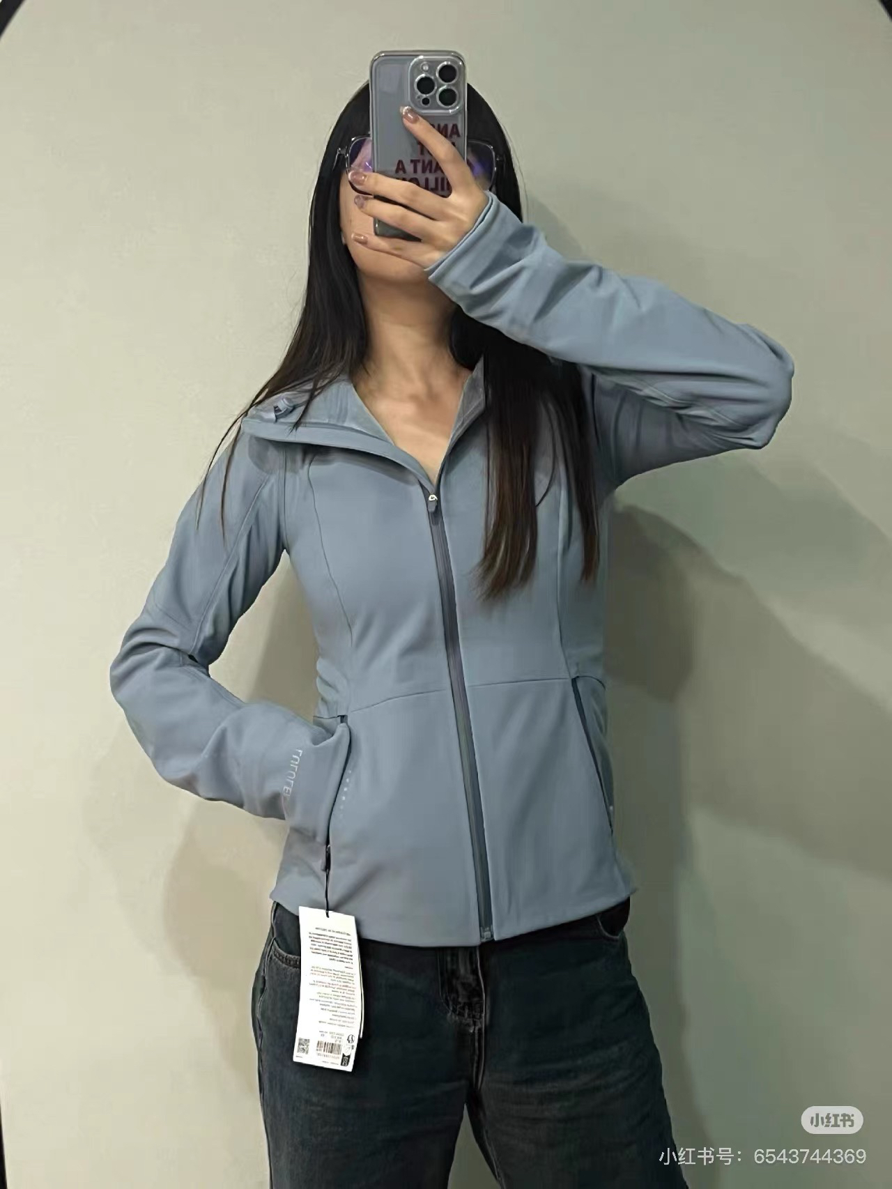 整个衣身是多拉链口袋设计,右侧腰间隐形拉链口袋内置网纱手机收纳袋,拼接袖口内置弹力罗纹拇指洞袖口不仅可以用来暖手,还可以用来凹造型