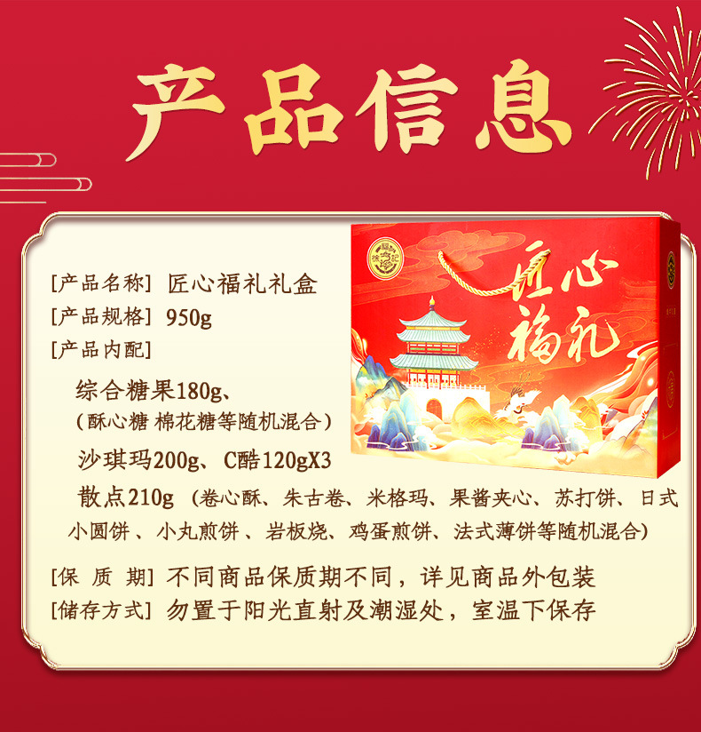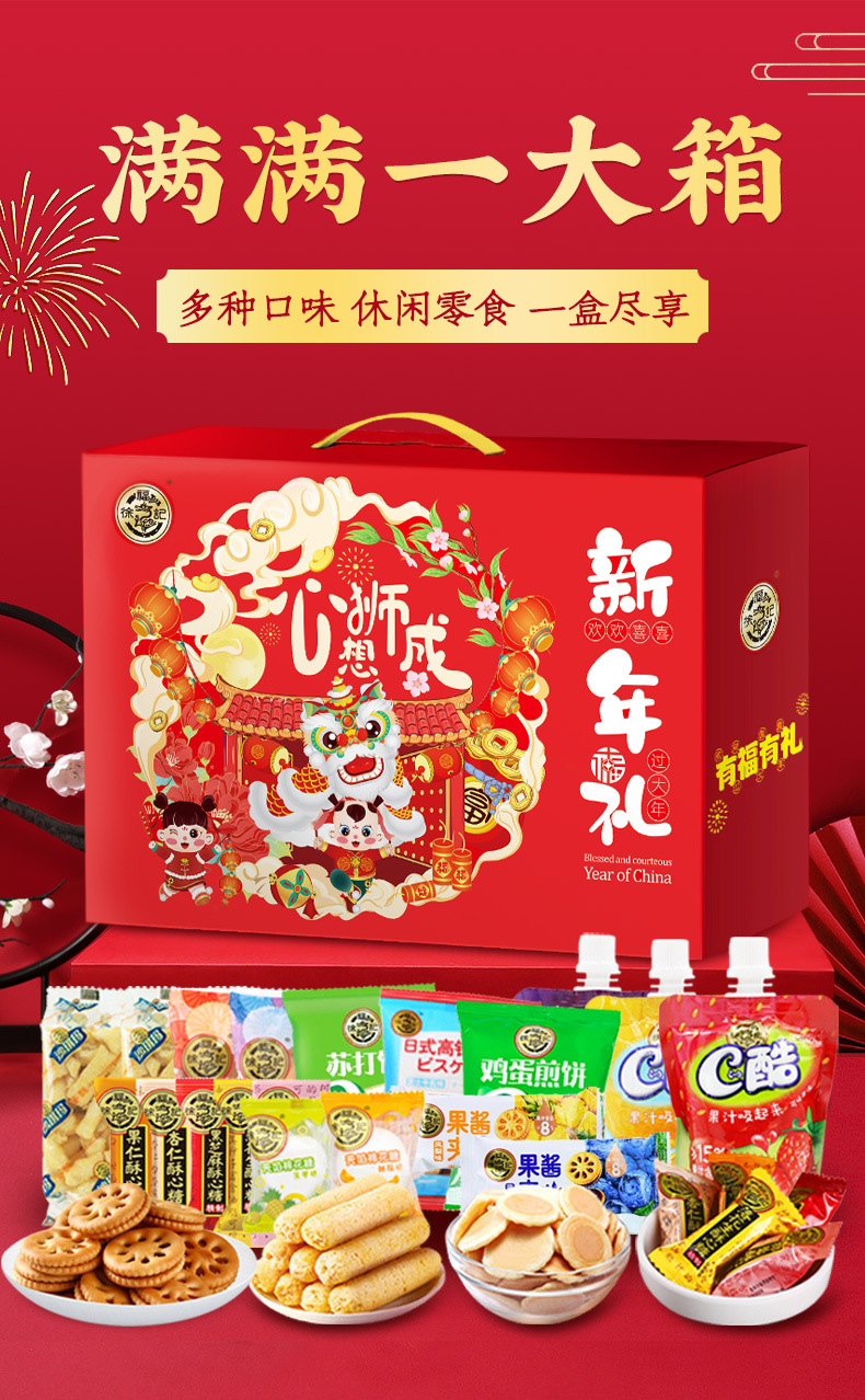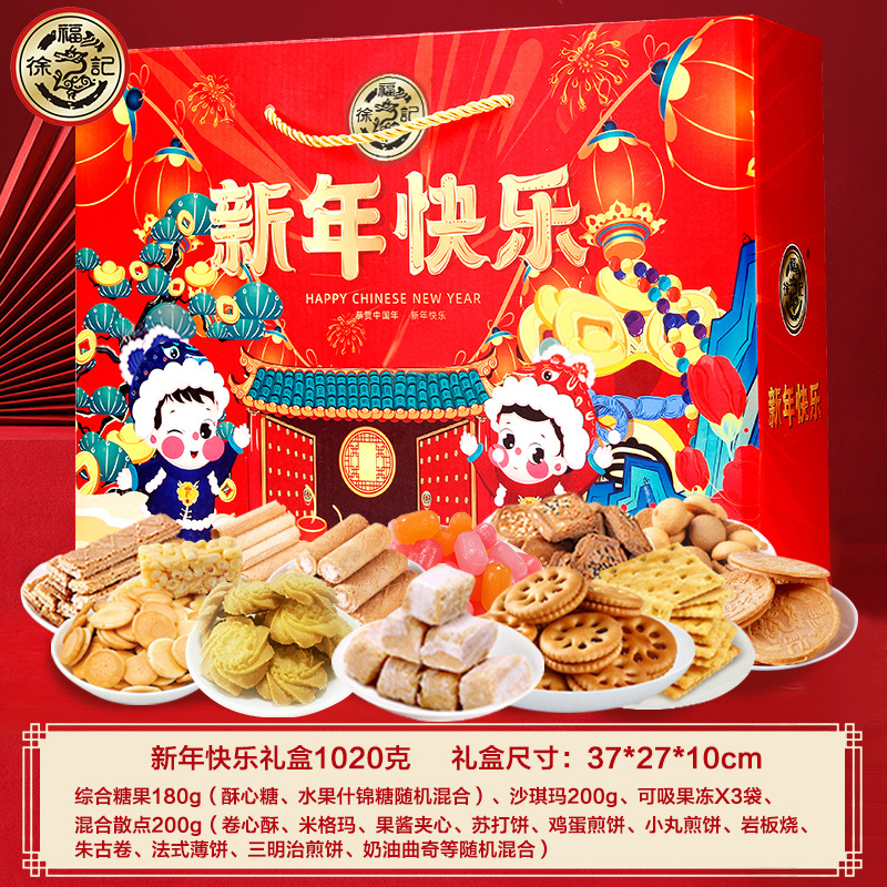 【匠心福礼!新年糕点礼盒】徐福记年货 多种爆款零食一盒尽享,精美国潮传统手提绳,礼到福到,元旦新年佳品!2022虎年春节常备!七夕情人节健康伴手礼
