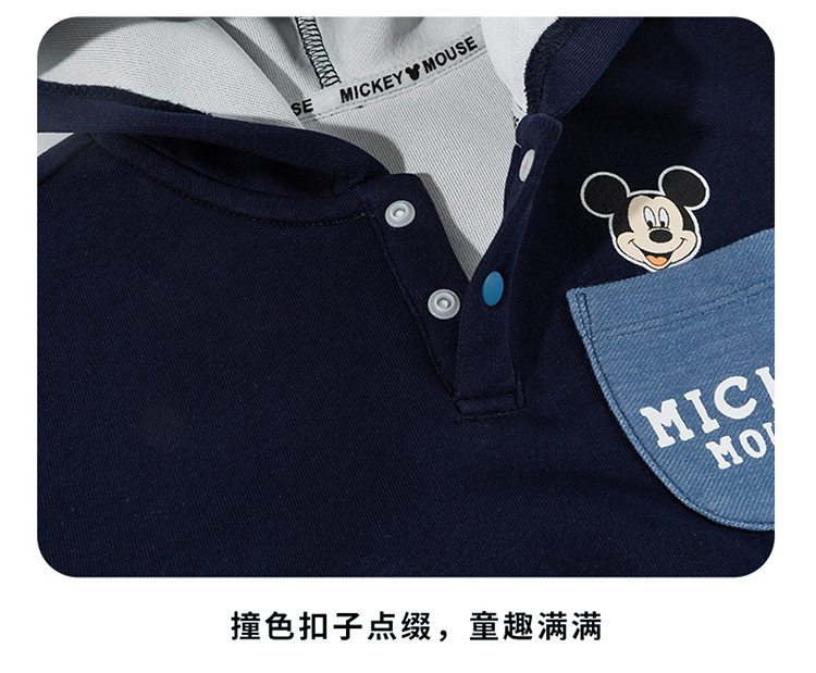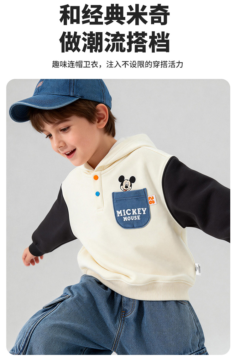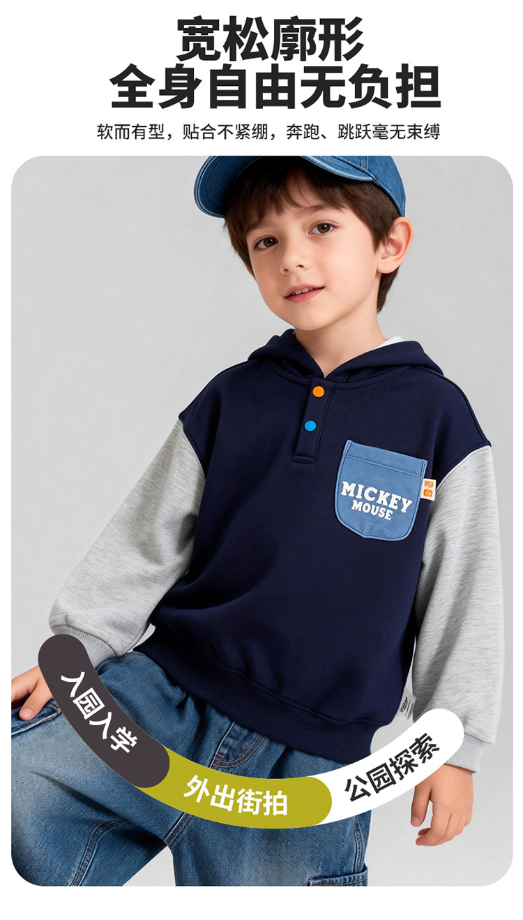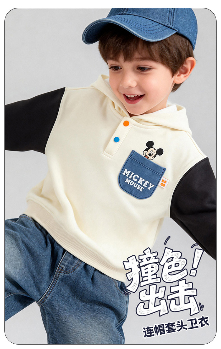迪士尼(Disney)童装男童连帽套头卫衣撞色插肩袖连帽耐磨休闲潮酷卫衣2026春季ZD1FS023