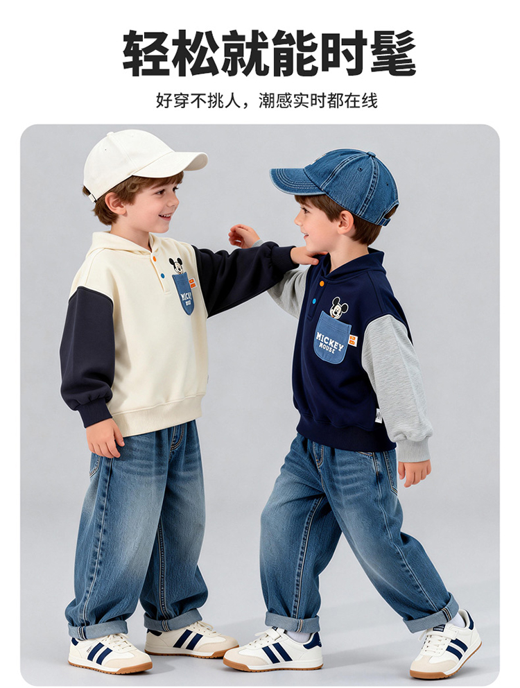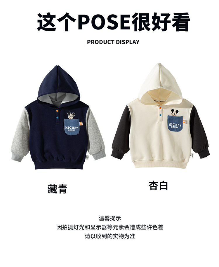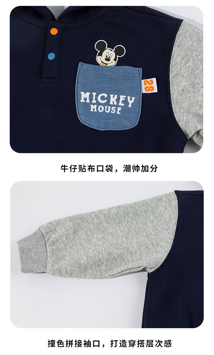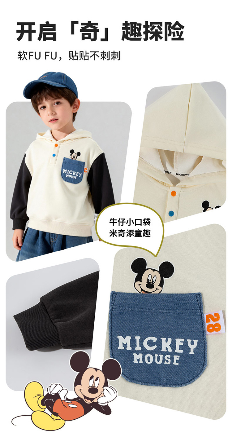 迪士尼(Disney)童装男童连帽套头卫衣撞色插肩袖连帽耐磨休闲潮酷卫衣2026春季ZD1FS023