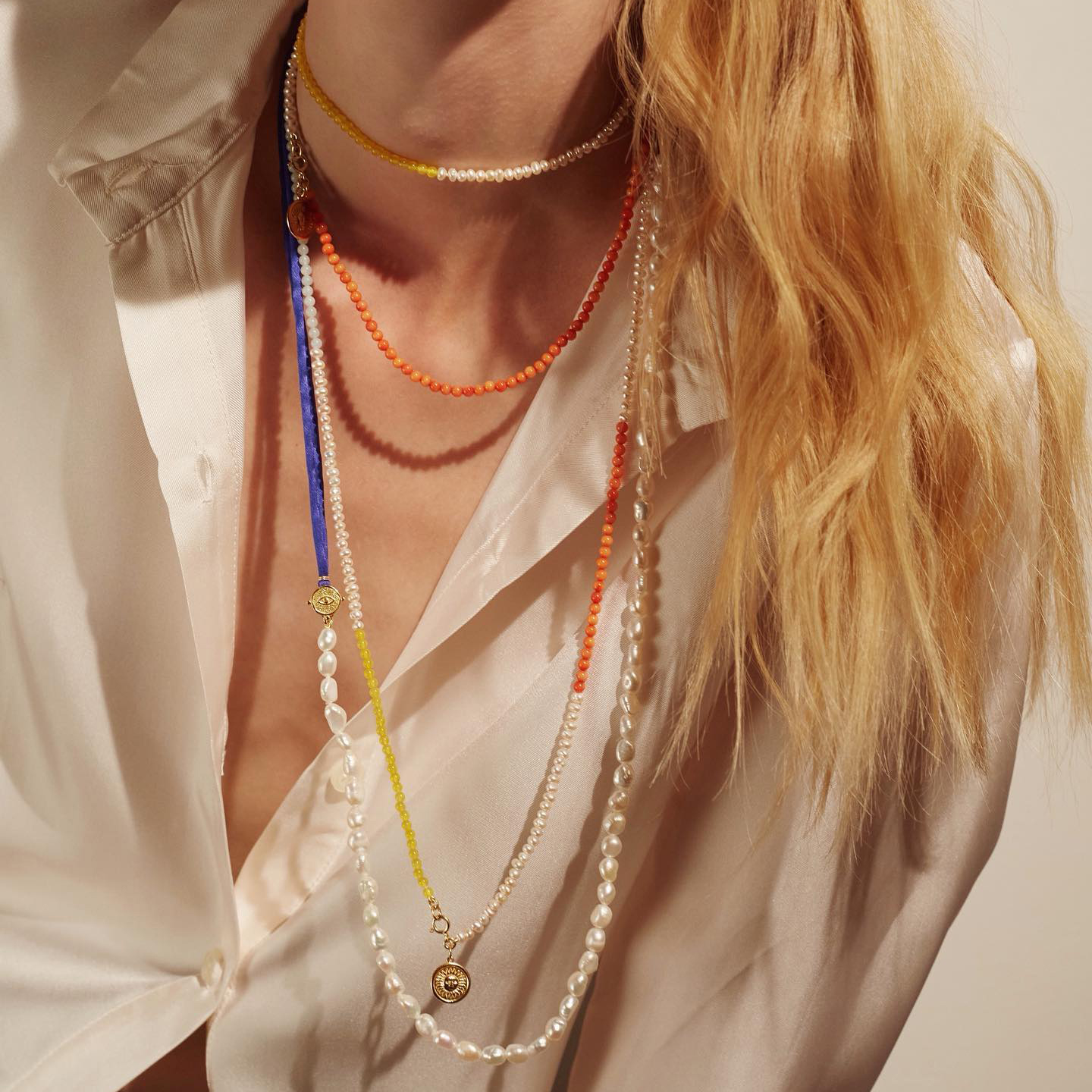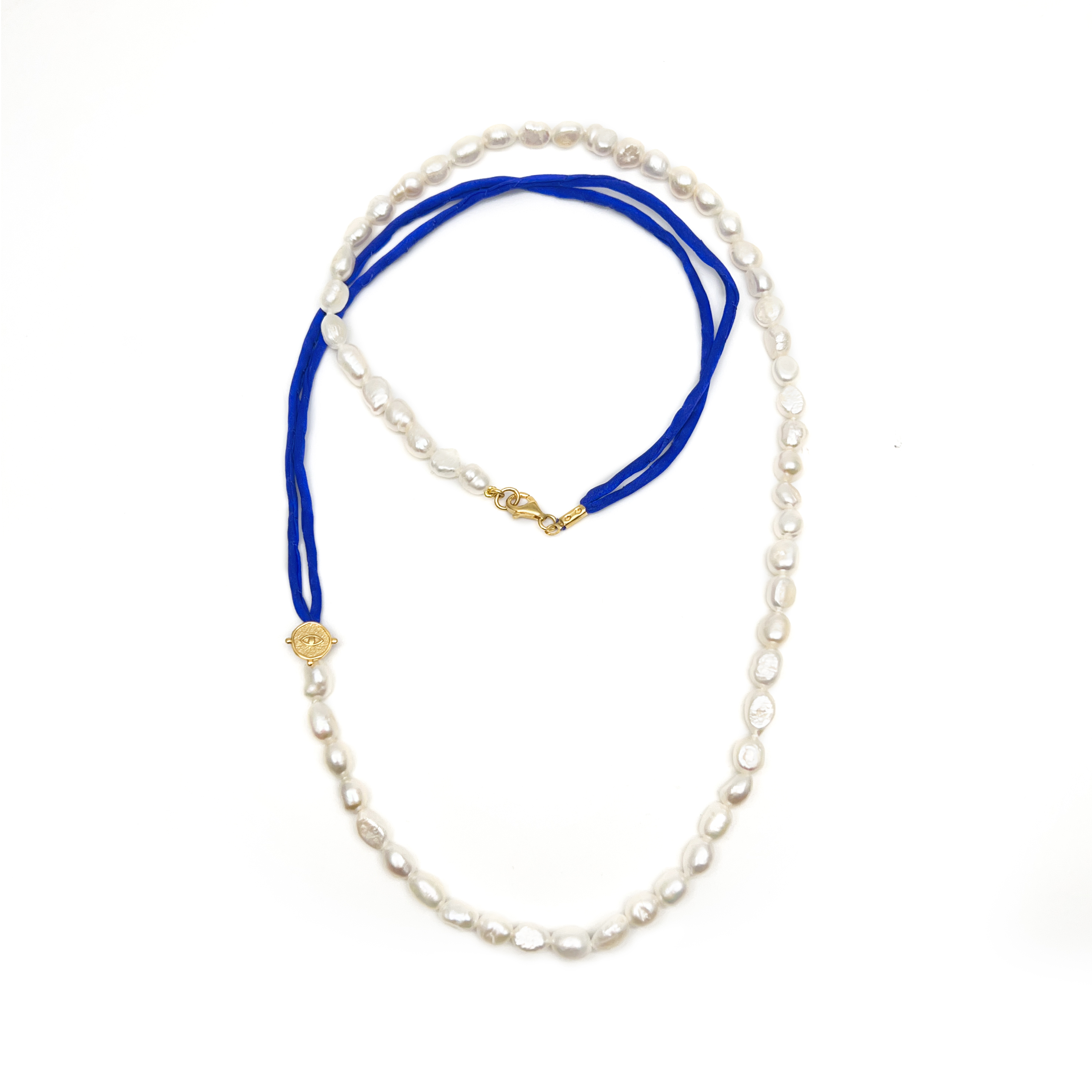 暂停销售|Barbóra-IEye-皇家蓝 眼睛金币 珍珠 长项链(多种戴法)[希腊设计师]