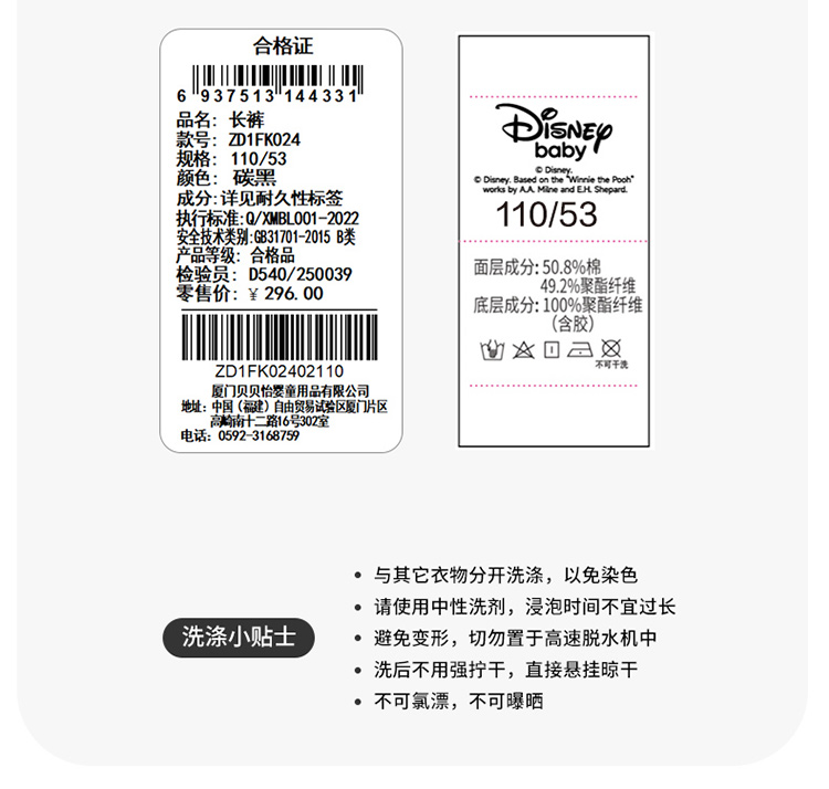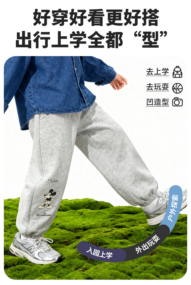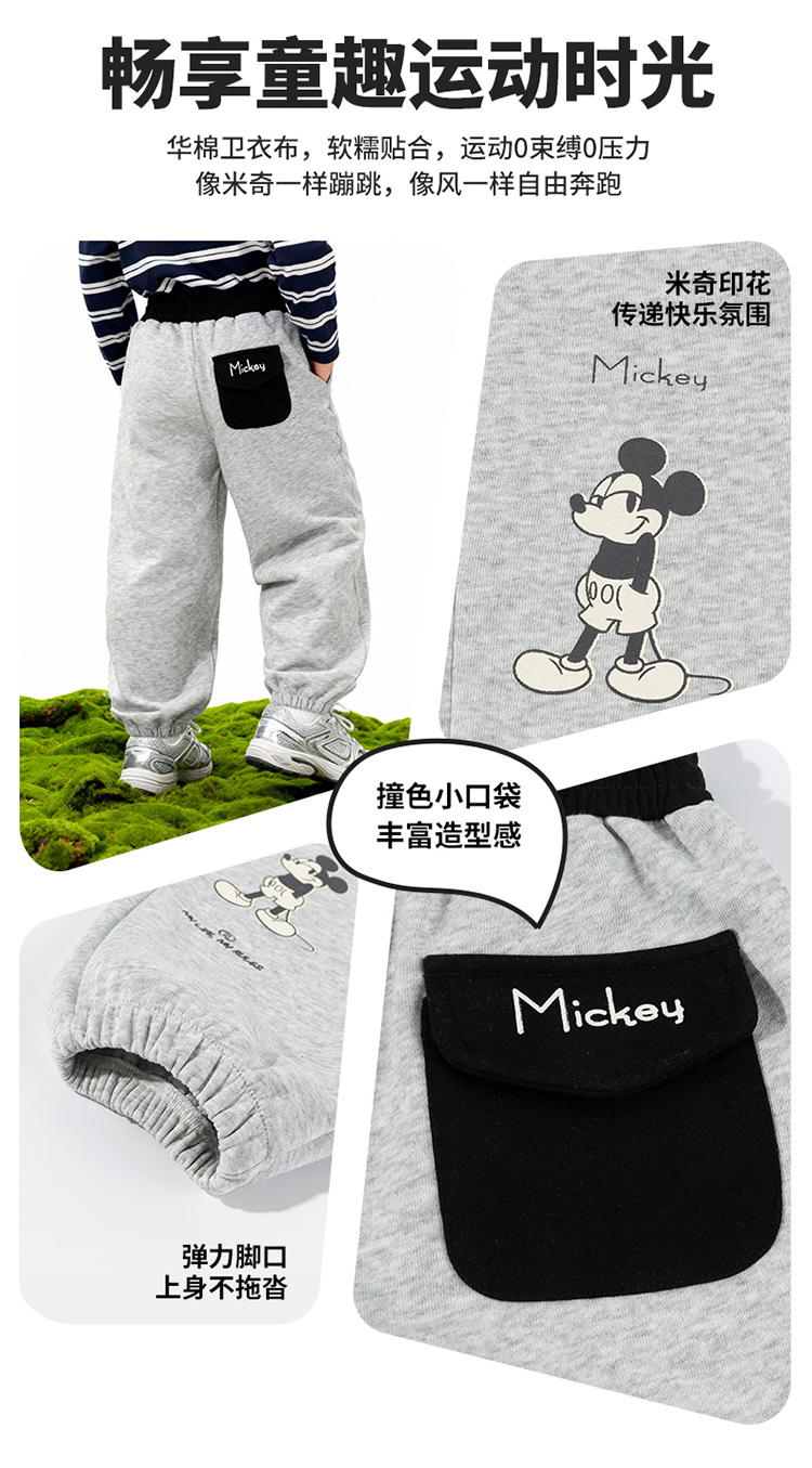 迪士尼(Disney)男童裤子春秋新款儿童时髦运动长裤小童户外休闲耐磨卫裤ZD1FK024