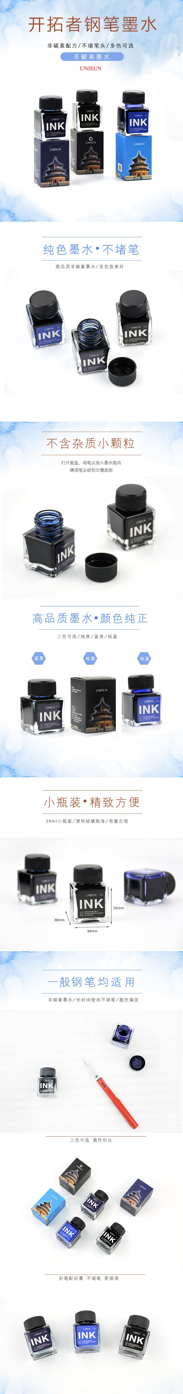 UNISUN开拓者钢笔专用墨囊墨水书写顺滑好用无碳墨囊 /墨水