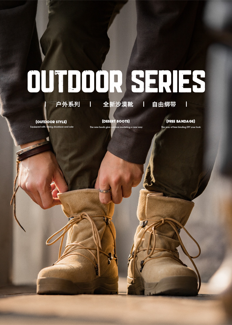 【马登男鞋】工装靴男靴秋季新款美式复古休闲高帮沙漠靴子棕色户外高帮登山靴