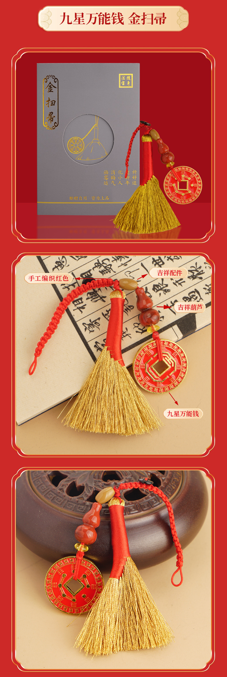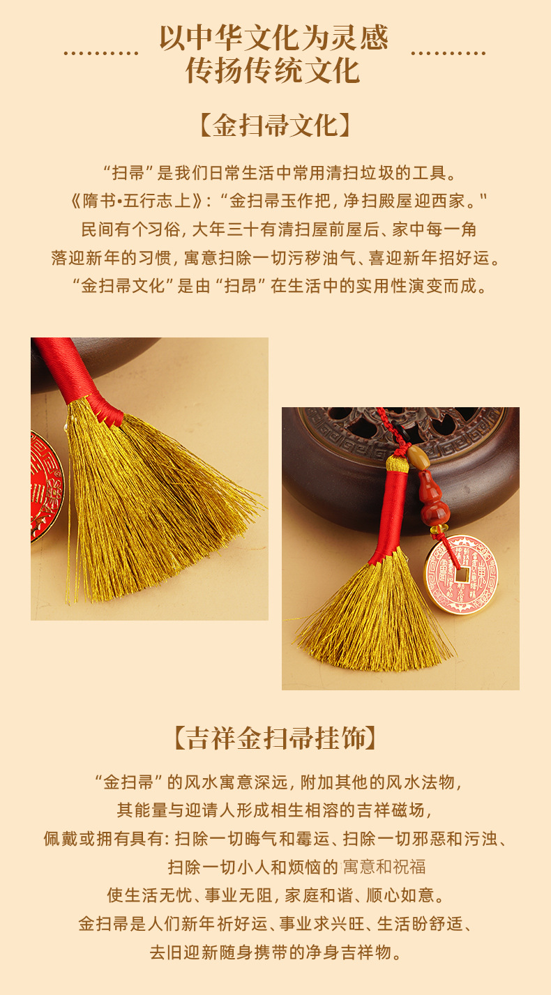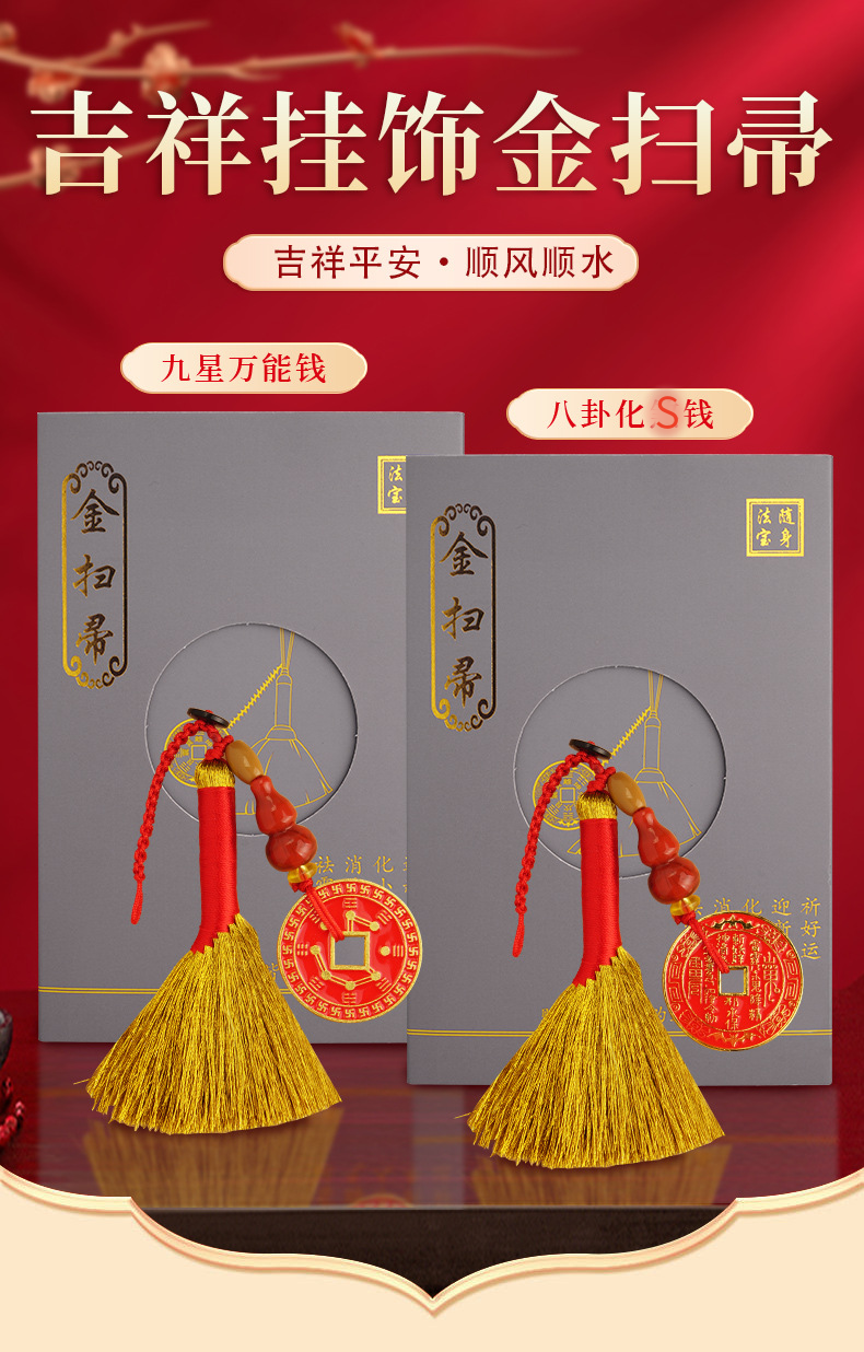 【灵机生活馆】金扫帚/ 金扫把 八卦钱挂饰 小亻退散