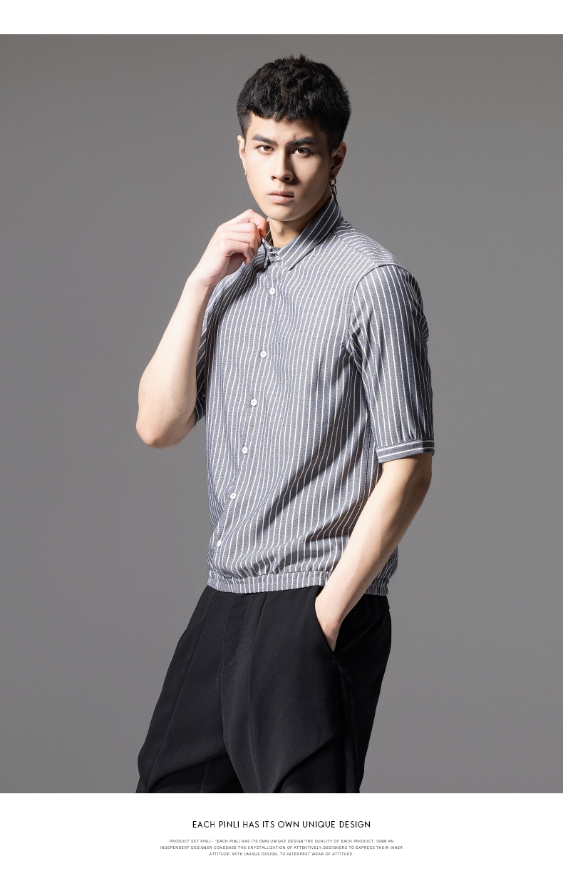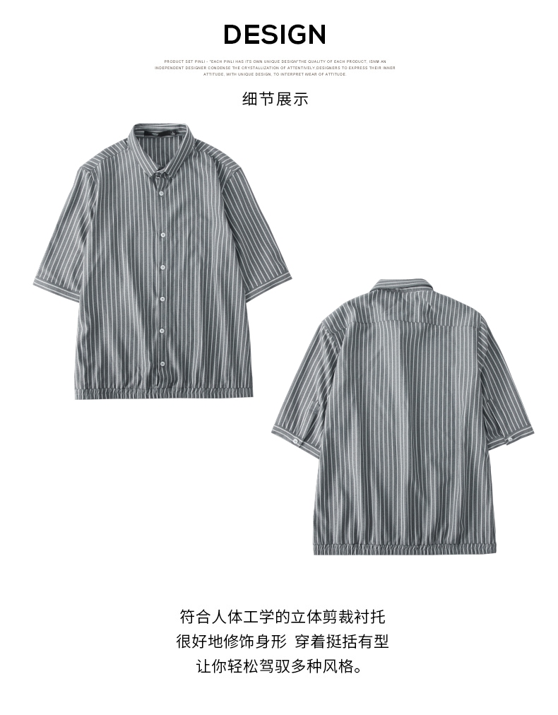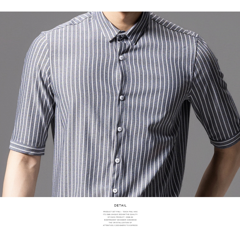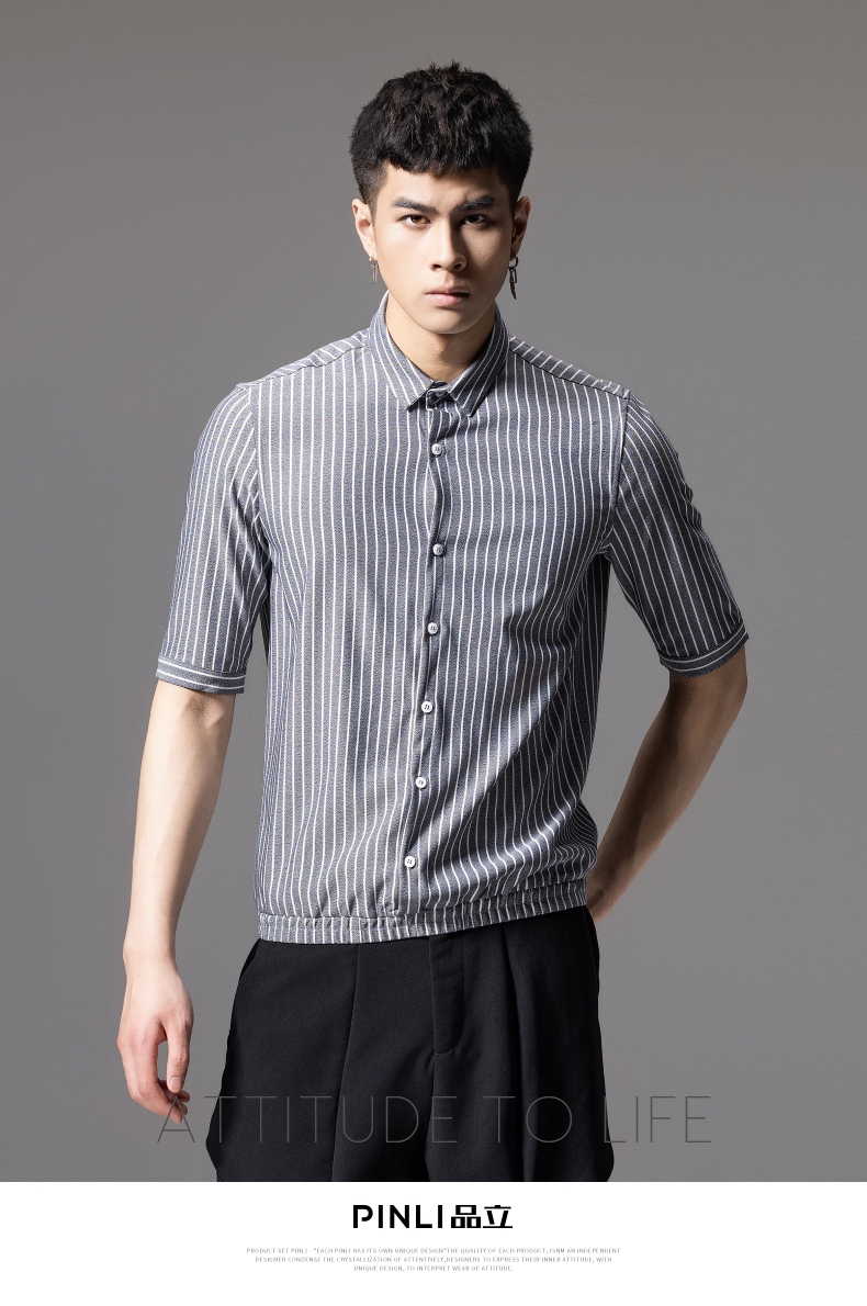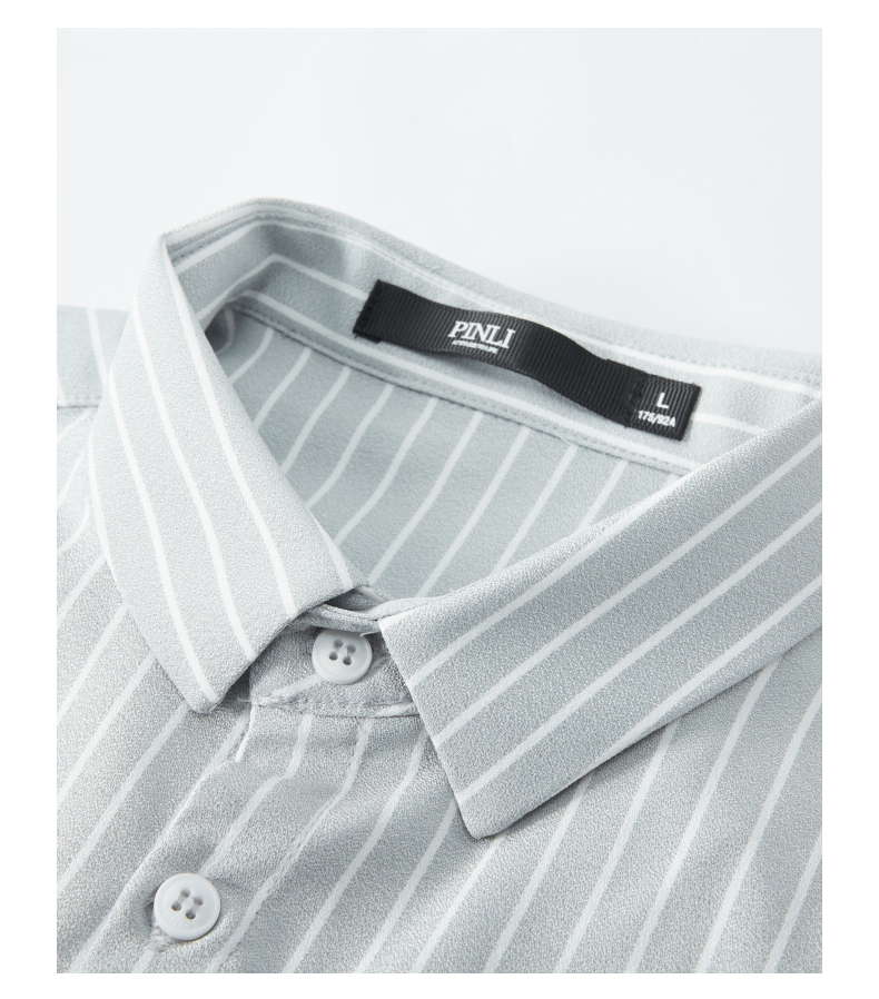 PINLI品立2024夏季新款男士尖领休闲条纹中袖衬衫上衣B242113065