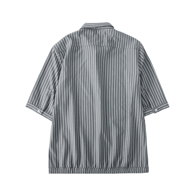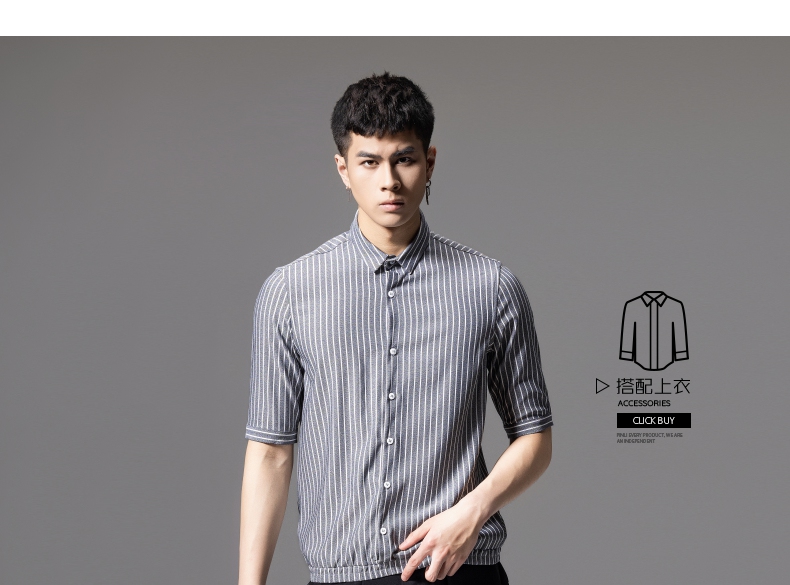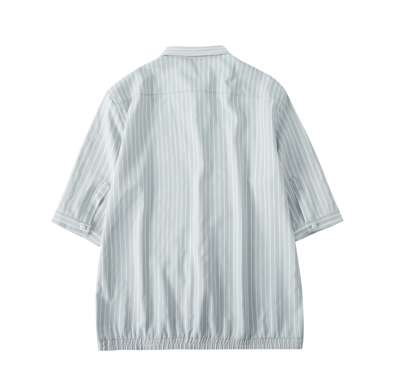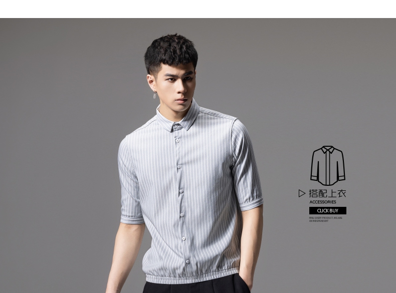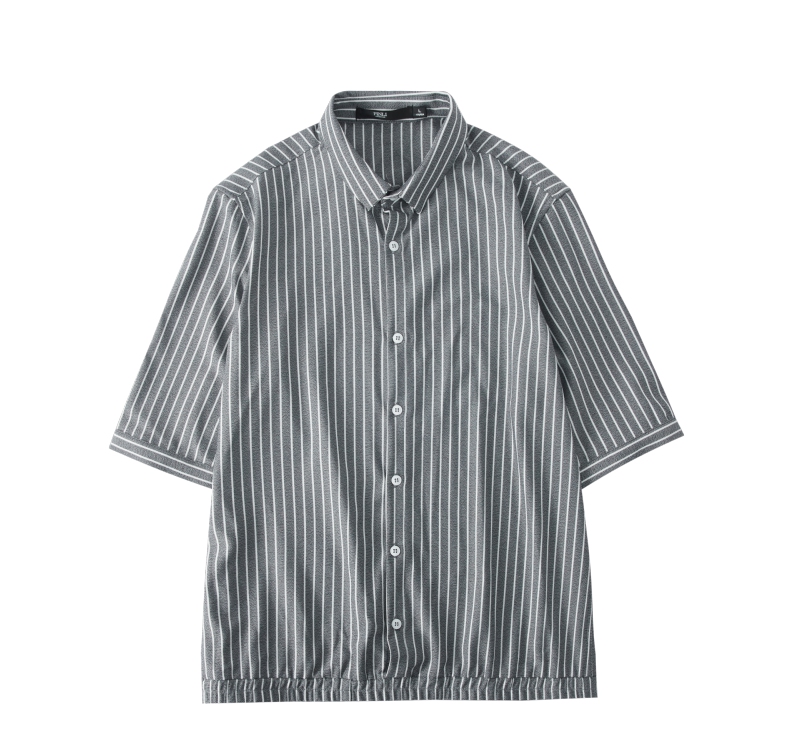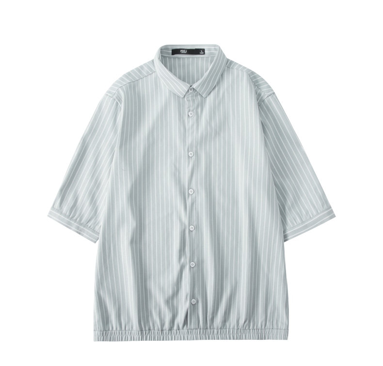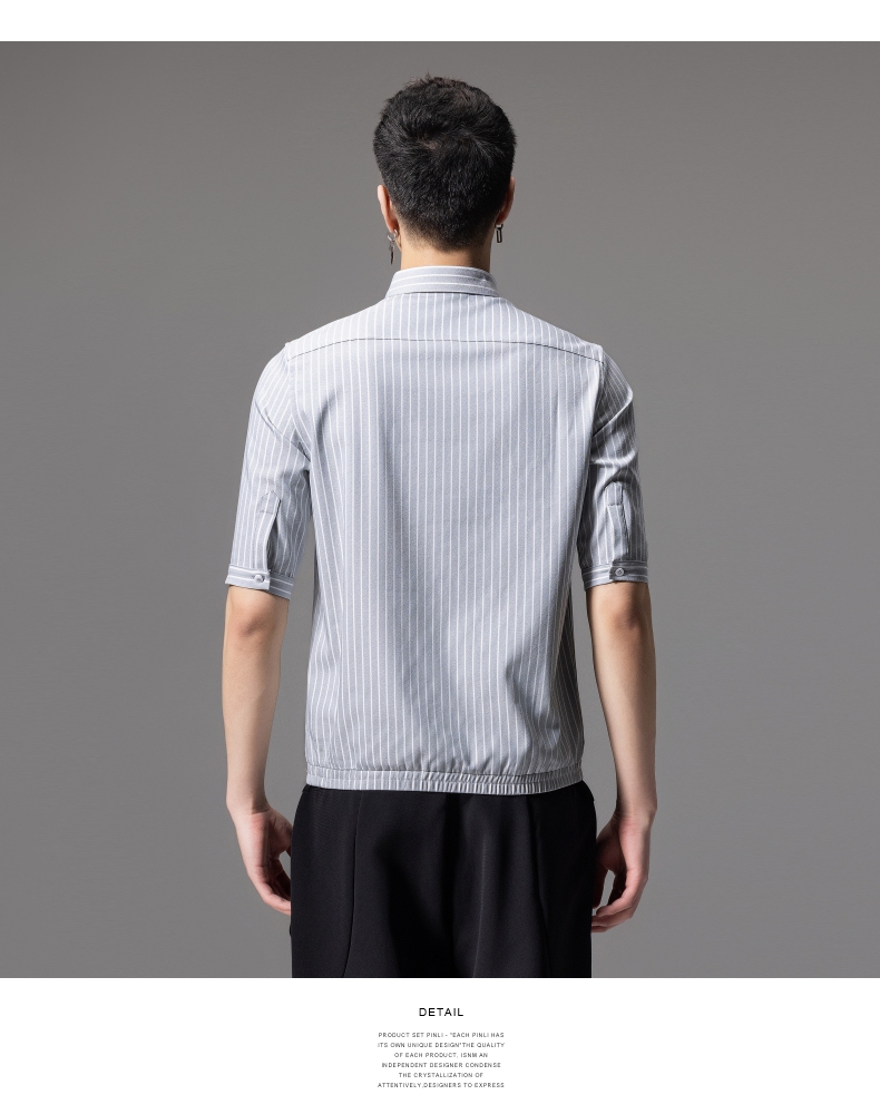 PINLI品立2024夏季新款男士尖领休闲条纹中袖衬衫上衣B242113065