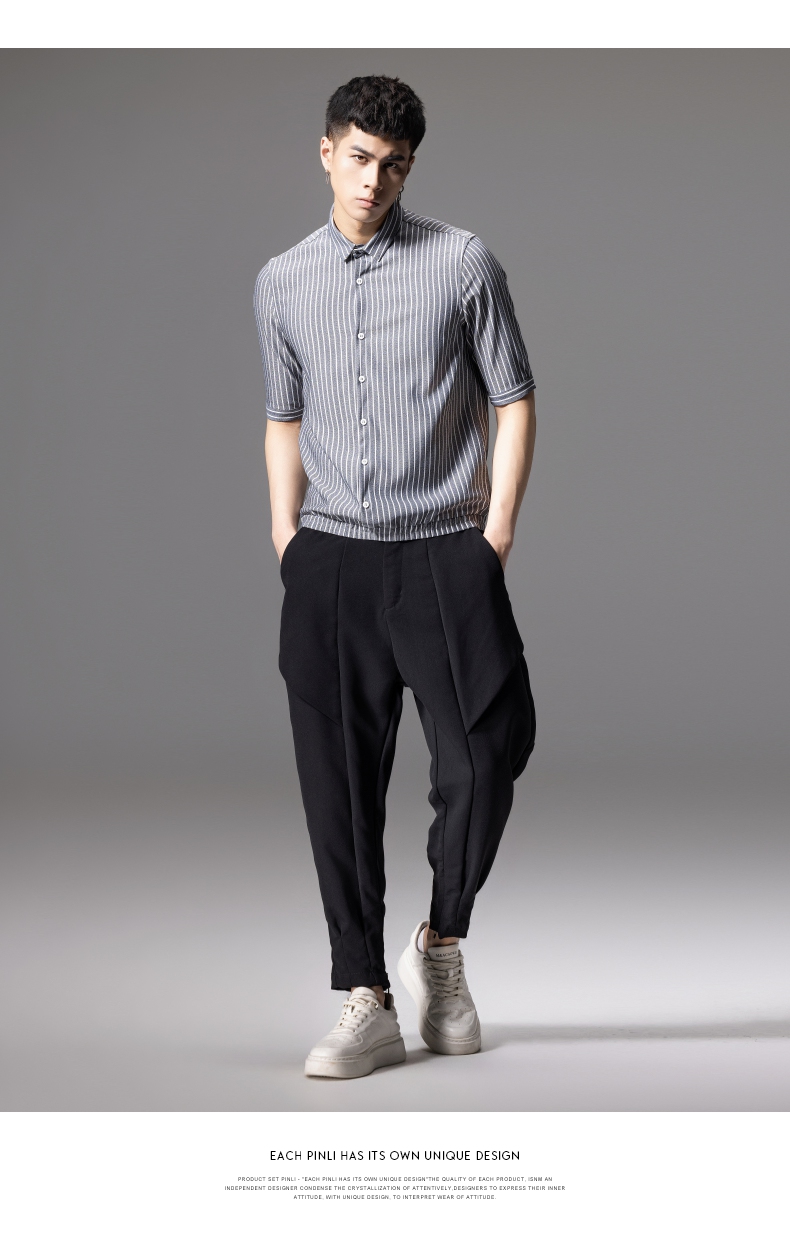 PINLI品立2025秋季新款男士褶皱设计感休闲长裤潮牌直筒伞兵裤子GD253117074