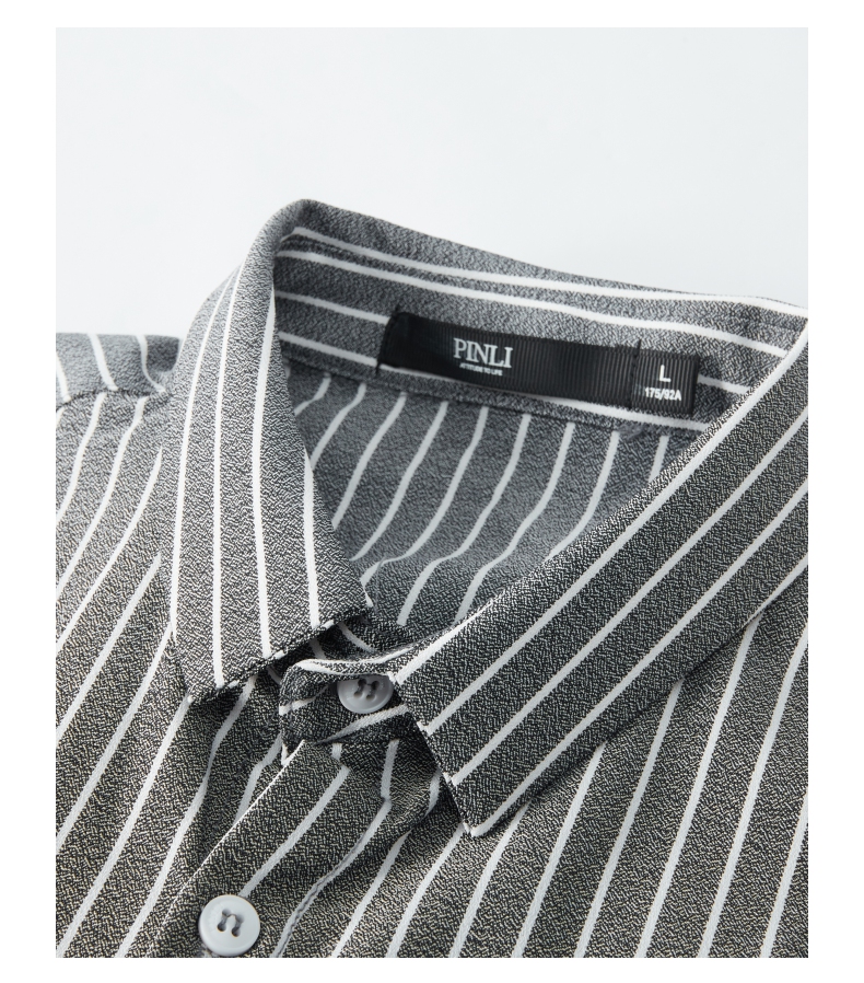 PINLI品立2025秋季新款商务休闲条纹长袖衬衫男士莫代尔修身衬衣GD253113058