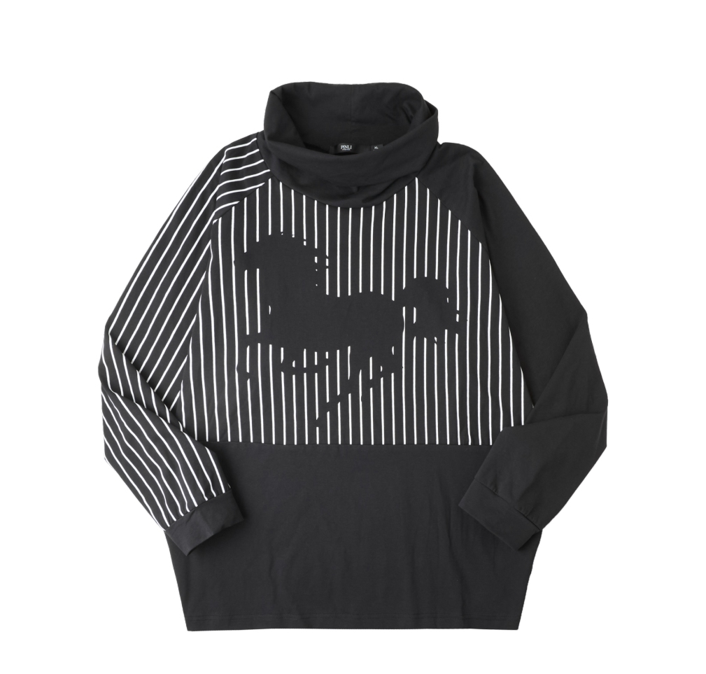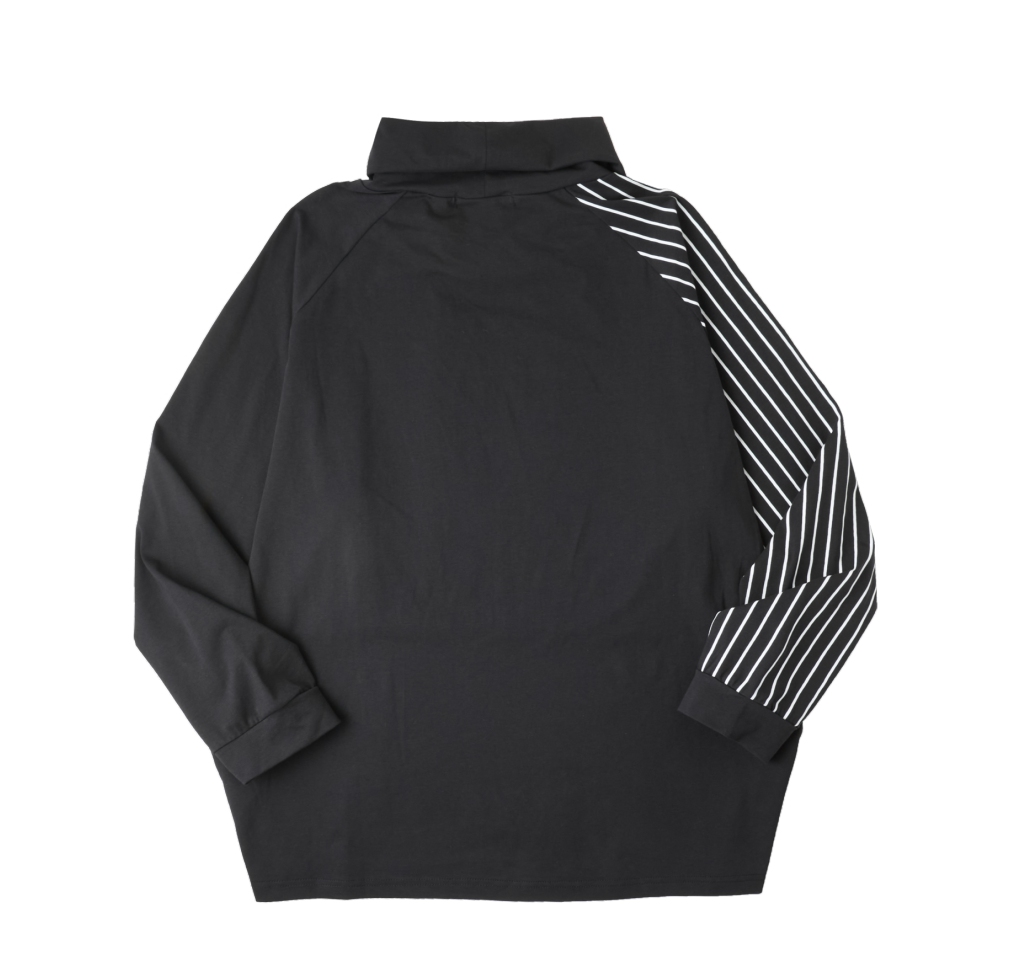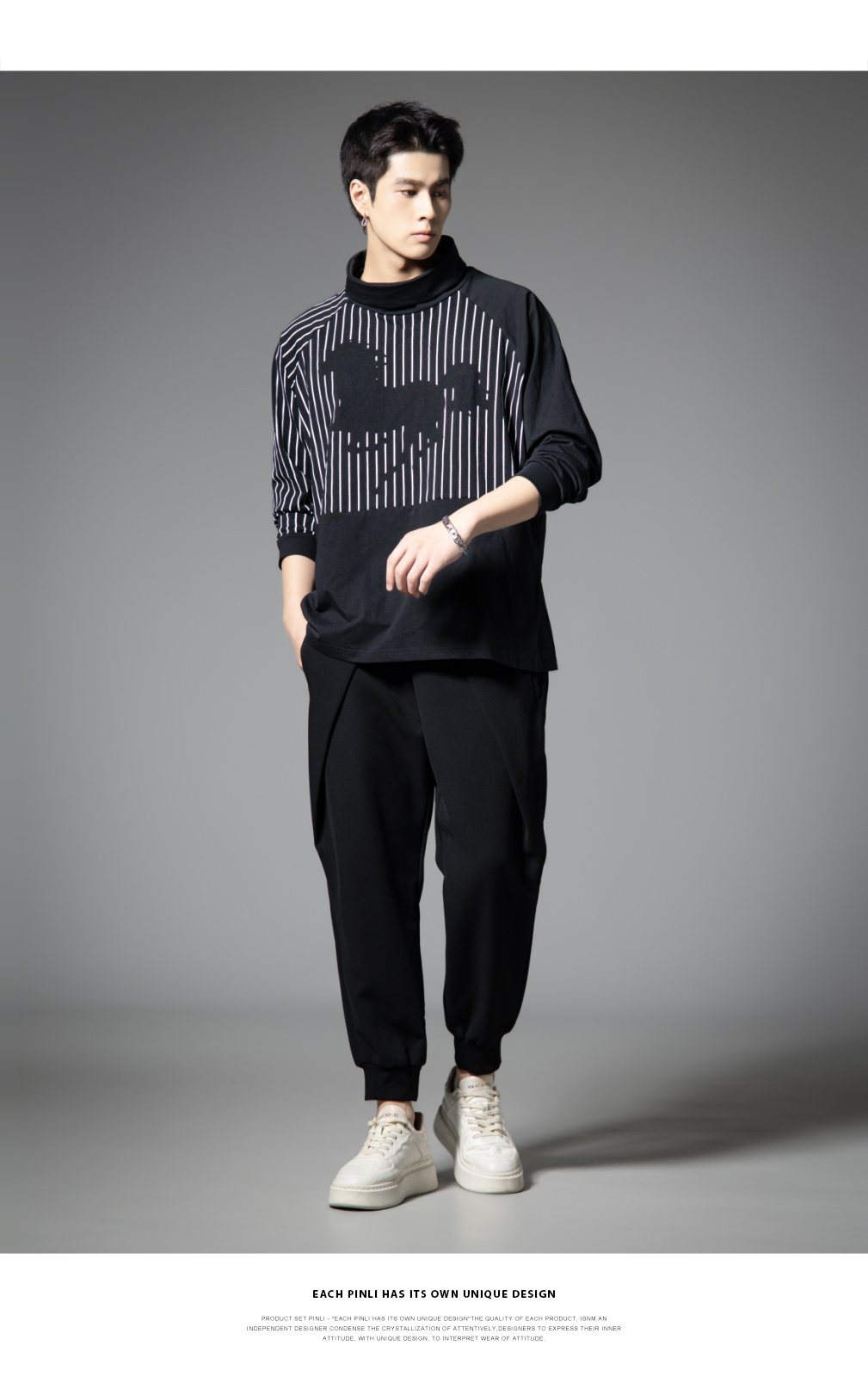PINLI品立2025秋季新款拼料插肩袖堆堆领T恤潮牌休闲宽松男士上衣B253111105