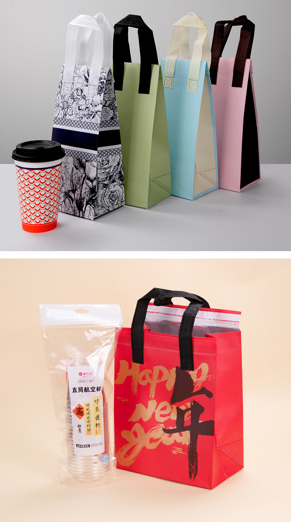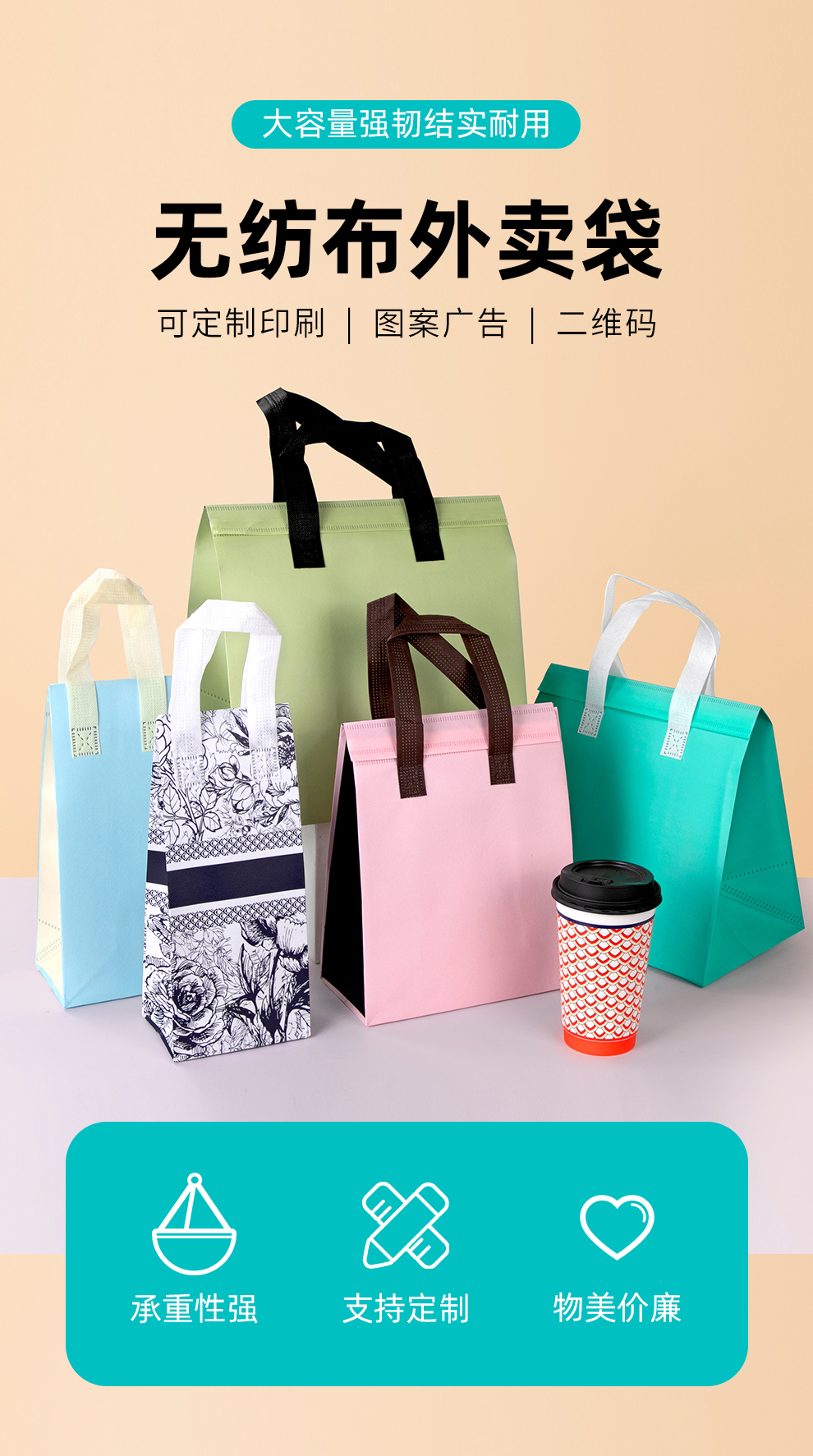 喇叭花无纺布外卖打包袋保温袋铝箔餐饮粥快餐包装手提袋子印刷logo防水定制