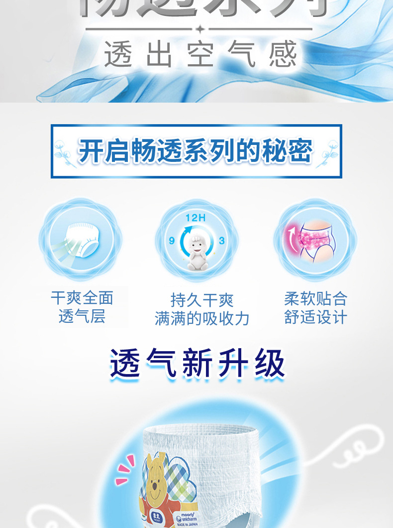 【一般贸易进口彩标】日本原装进口尤妮佳纸尿裤尿不湿男女拉拉裤柔软干爽三倍透气 全码
