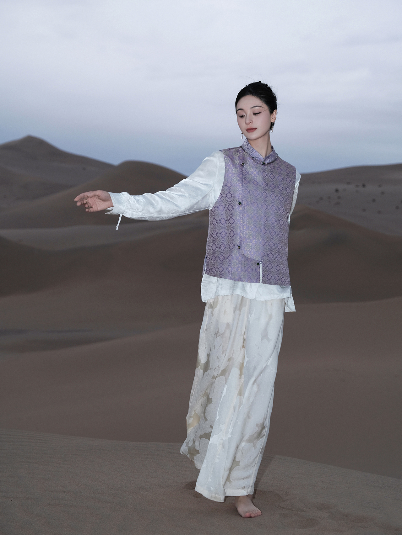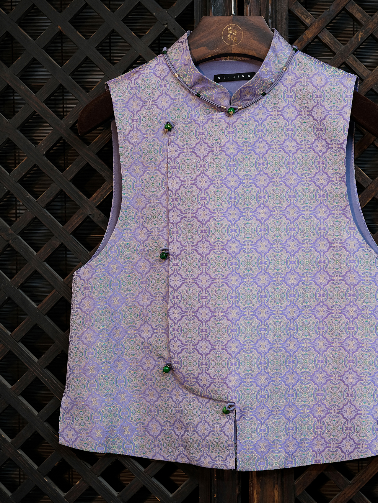 盛唐婧 |紫云中式国风宋锦琵琶襟马甲