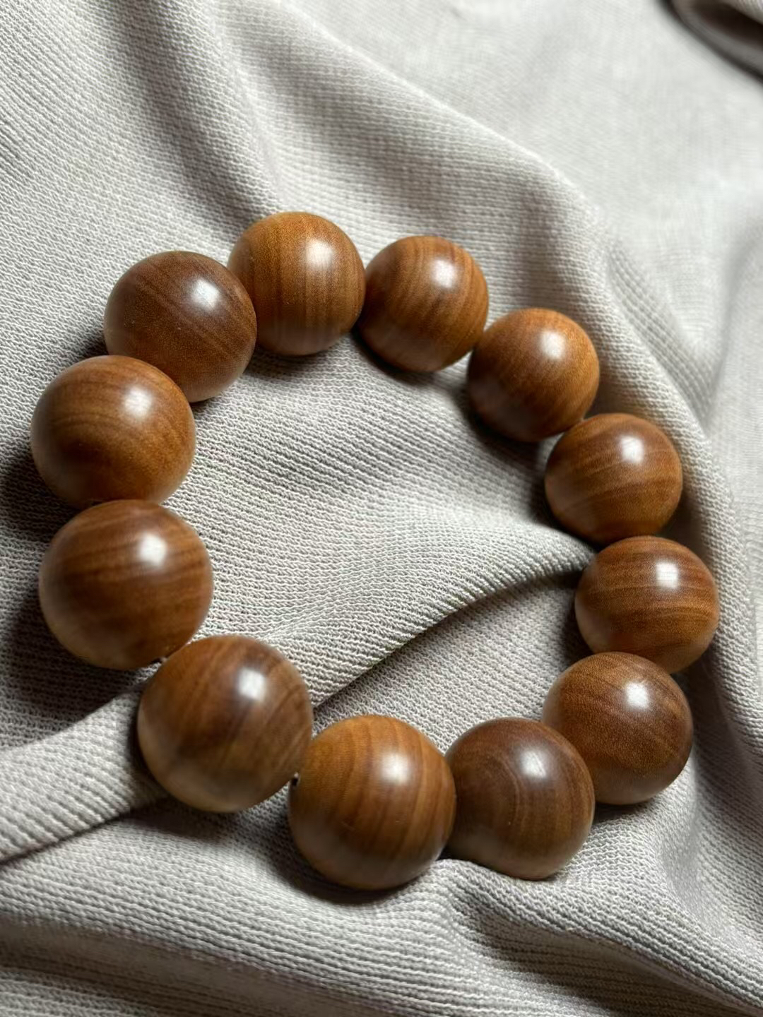 精品黑肉老山檀手串,款式经典,料质好,有韵味,带你轻松感受极品的特质!黑肉料料质紧实,油性足,颜色润泽,莹润感强,有一种自带的油润感。香气清新细腻,层次感丰富,舒适自然,韵味十足。日常把玩清香细腻,绝对文玩中的dior!喜欢就赶快入手!