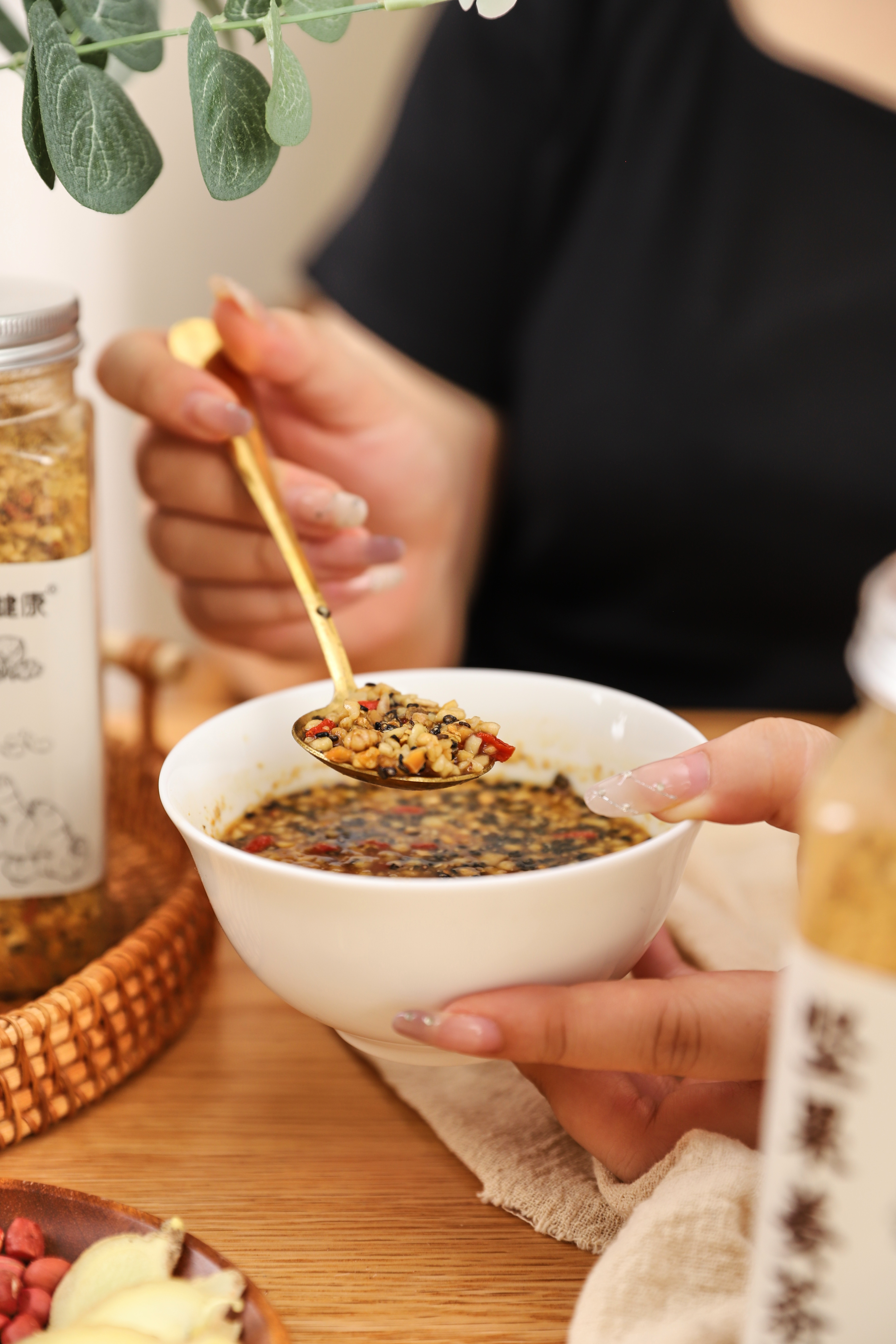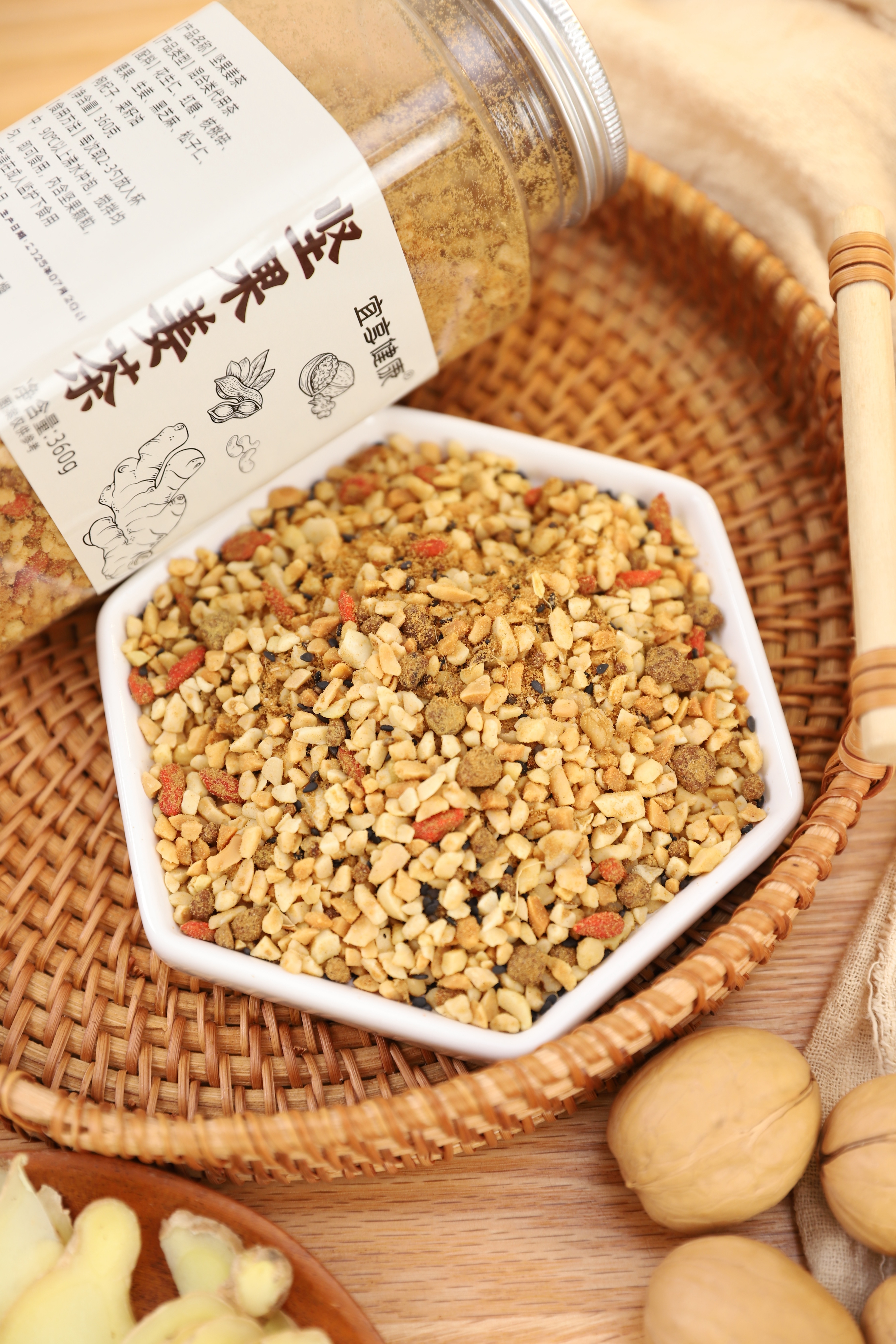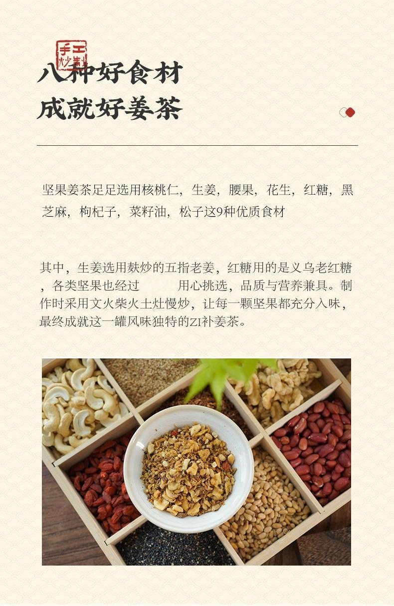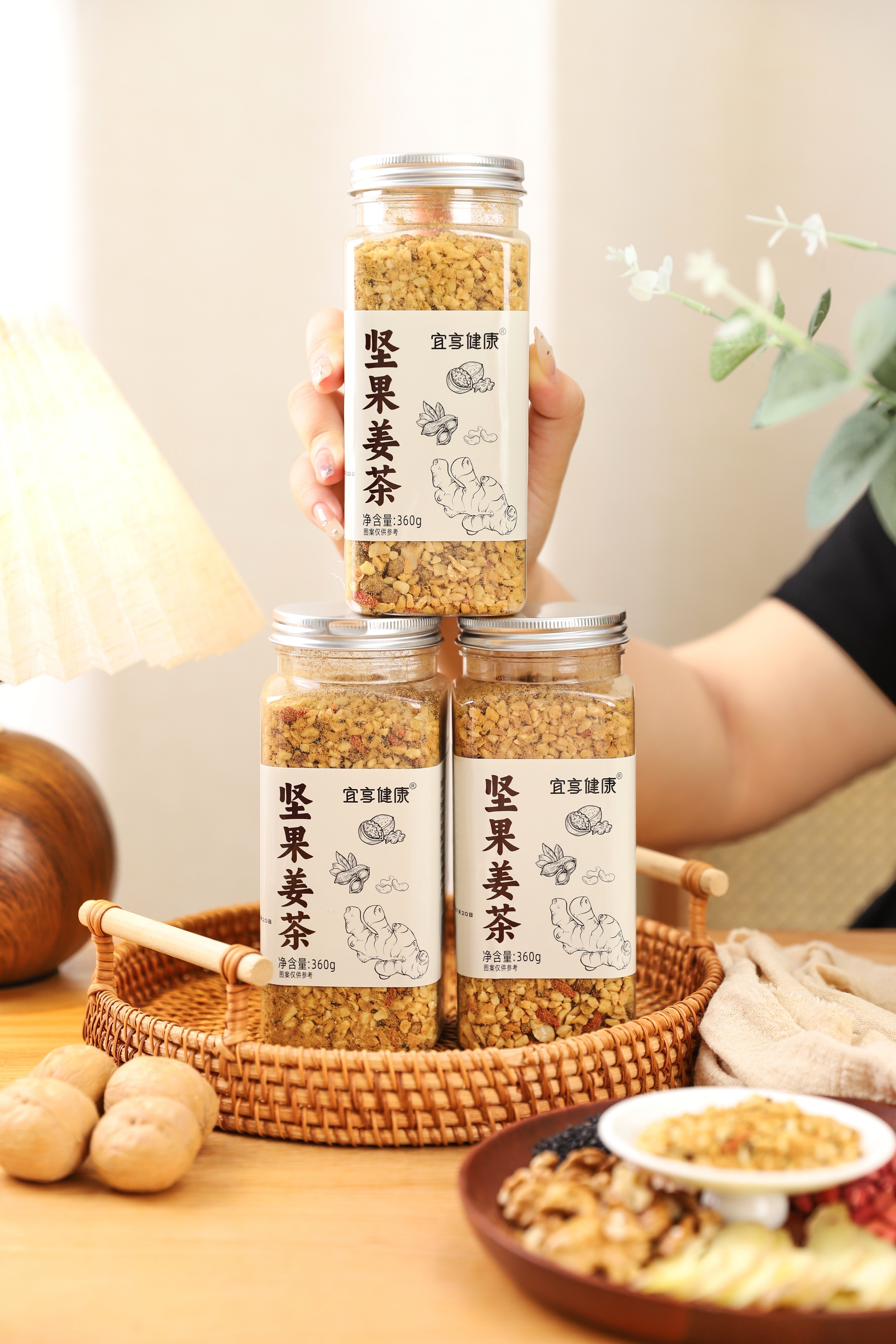 【品名】宜享健康坚果姜茶 【规格】360g/罐 【保质期】3个月 【配料】花生仁、红糖、核桃碎、腰果、生姜、黑芝麻、松子仁、枸杞子、菜籽油 【食用方法】每次取2-3勺放入杯中,90℃以上沸水冲泡,搅拌均匀,即可食用,内含坚果颗粒,儿童请在成人监护下食用。 【贮存方法】密封、置于阴凉干燥避光处,建议冷藏保存。 【致敏物】含有坚果及其果仁制品花生及其制品 【发货地】安徽 【发货快递】三通一达 【不发货区域】新疆,西藏,港澳台地区不发 【补邮费地区】内蒙、甘肃、青海、宁夏+15元 【发货时效】48小时,节假日顺延 |