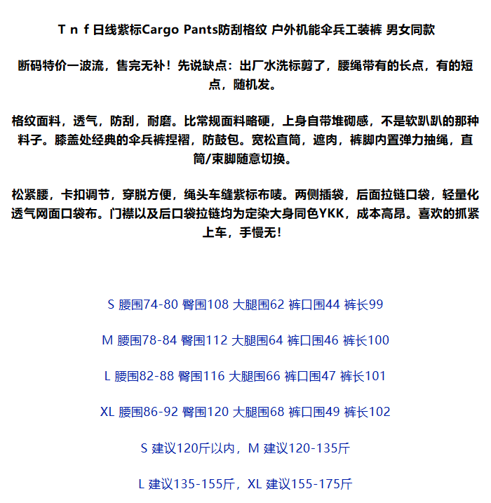 【ll1】福利款!男女款户外机能伞兵工装长裤!!