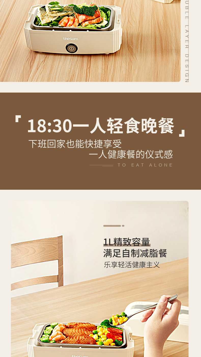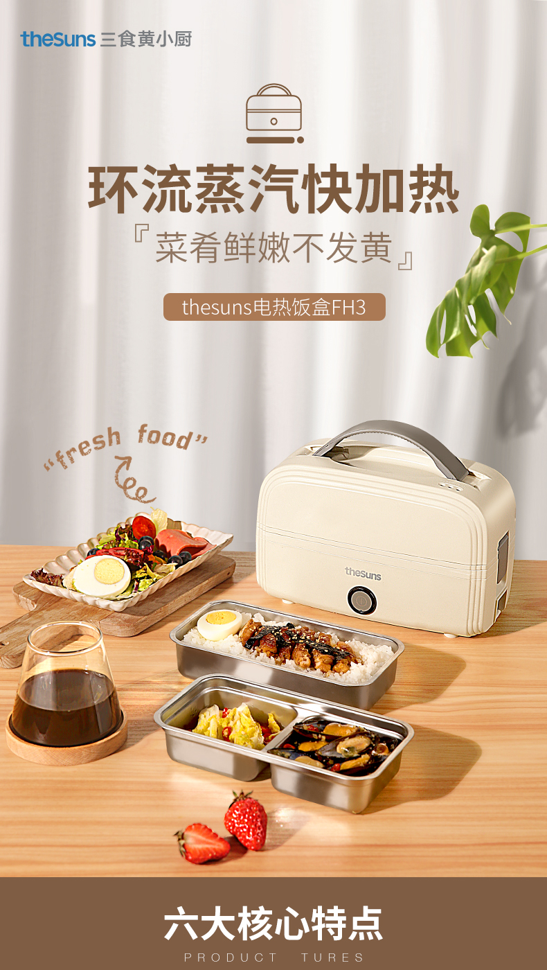 三食黄小厨The sun 电热饭盒可插电加热饭盒便携式(FH3)