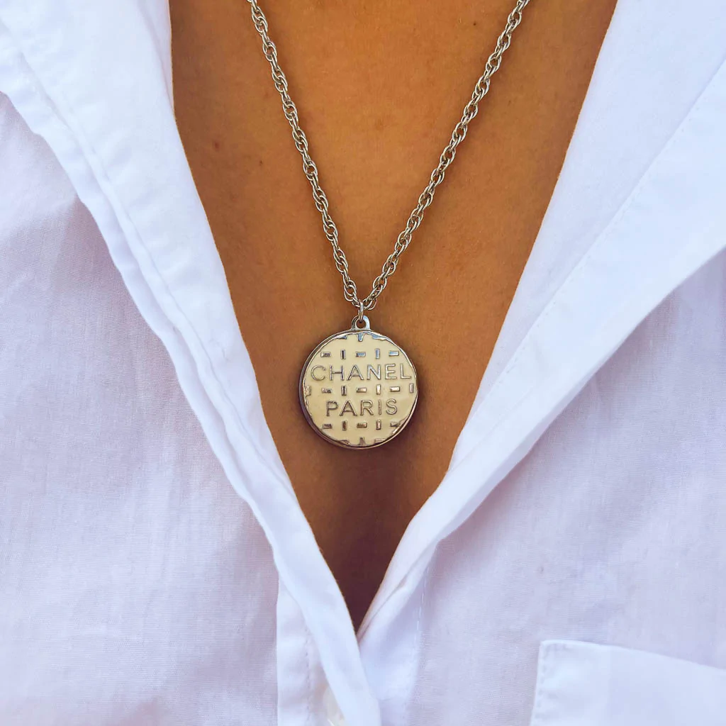 北京仓|Gigi Paris-Chanel-白色 中古纽扣 项链[法国设计师]